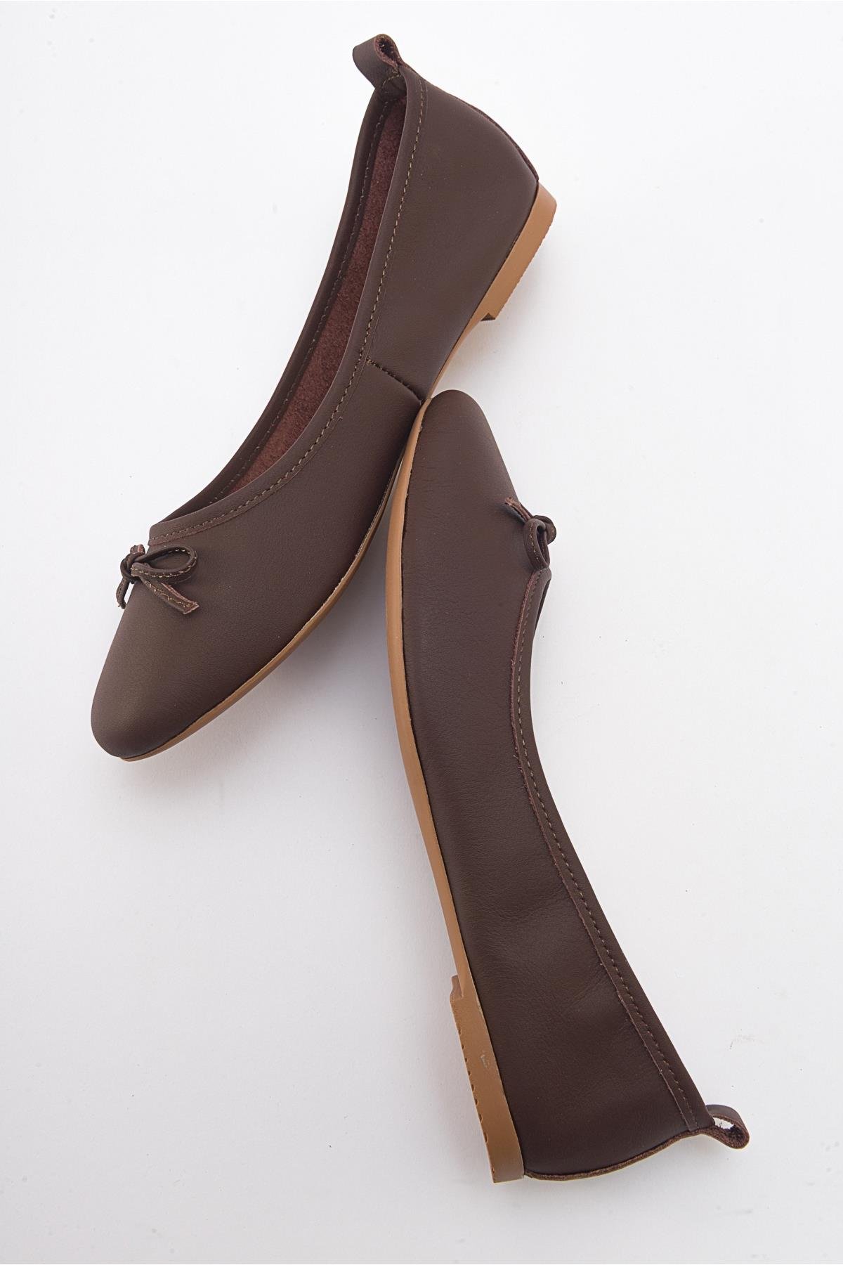 01 Kahve Cilt Hakiki Deri Kadın Babet Ayakkabı (63-01-30-KAHVE CILT)