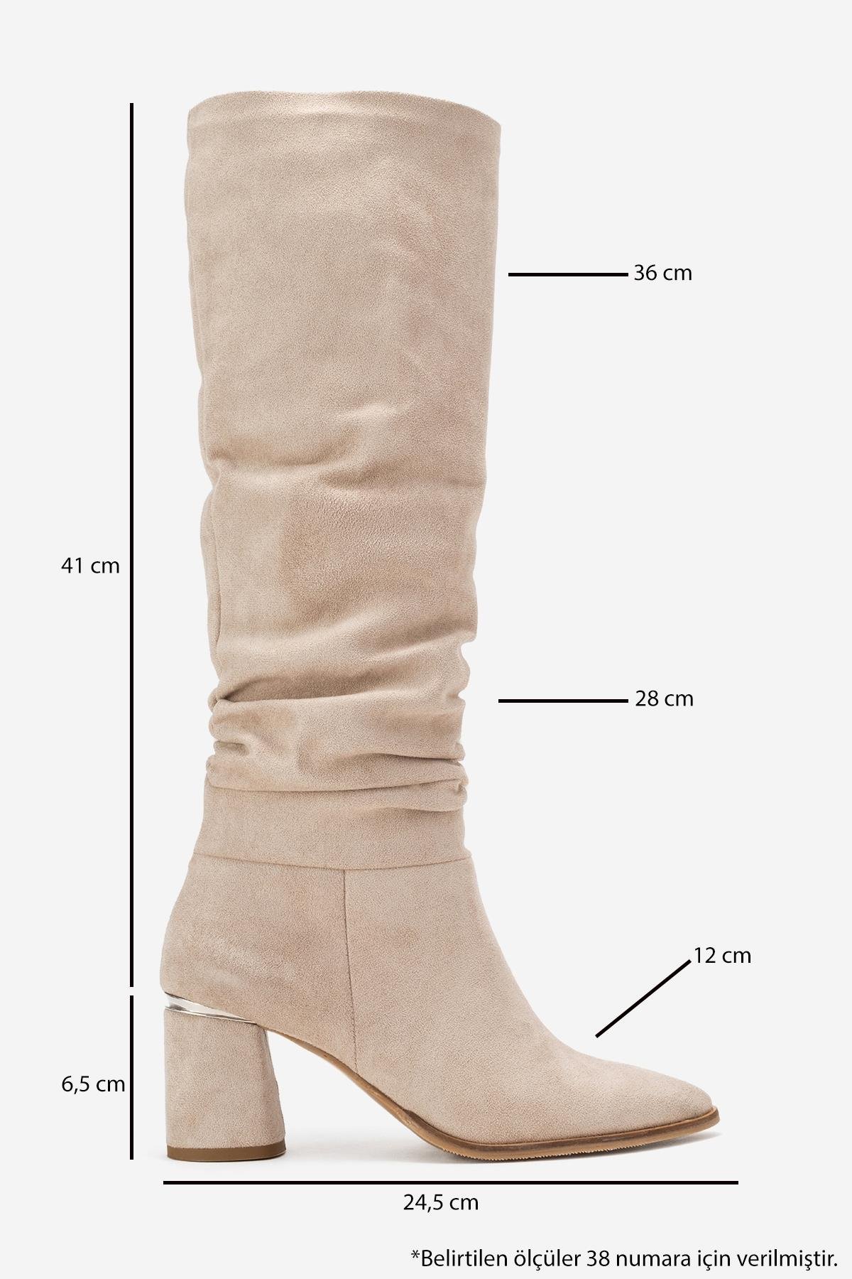 120 Bej Süet Körüklü Kadın Kalın Topuklu Çizme (68-120-9-BEJ SUET)