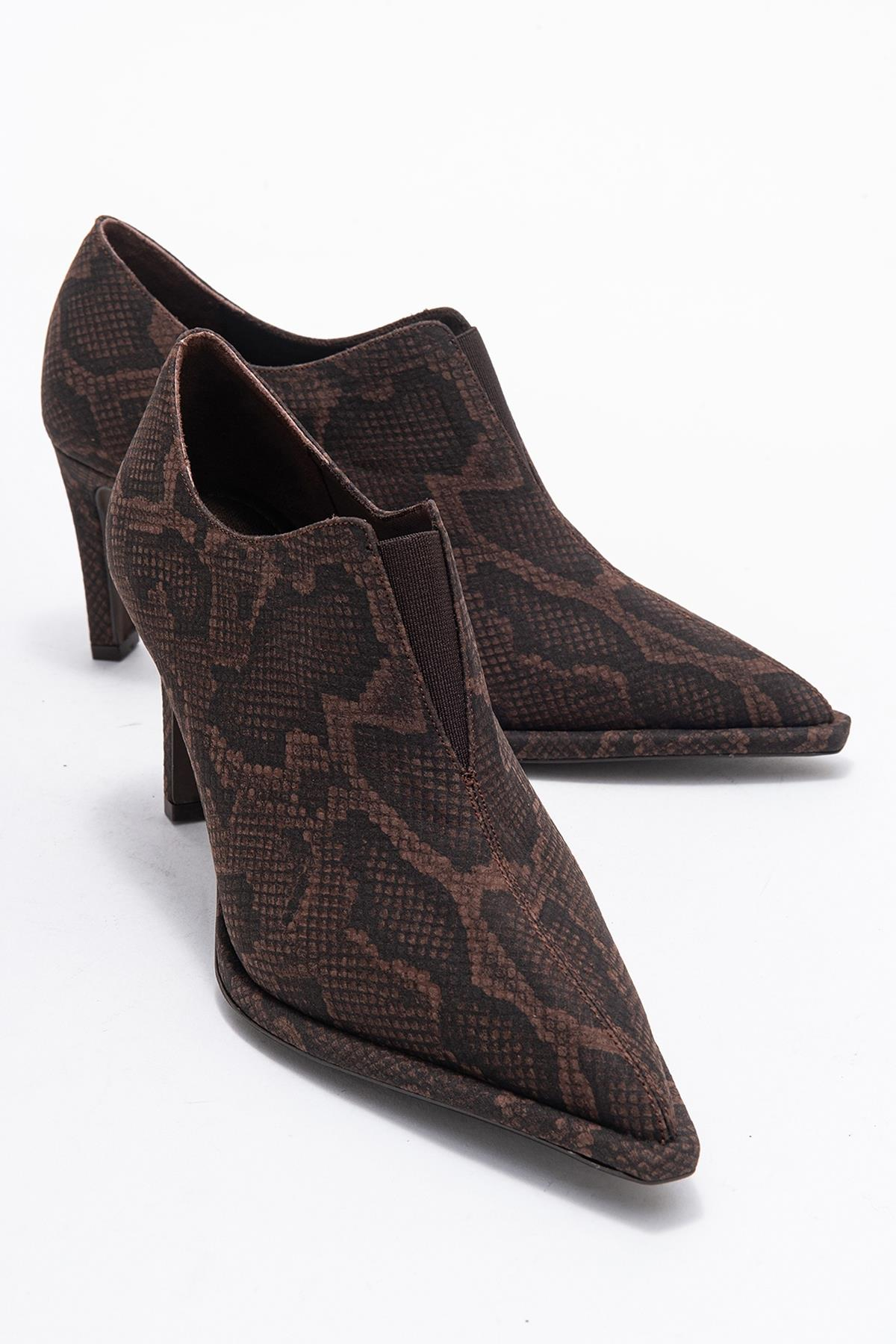 ALYA Kahverengi Desenli Lastikli Kadın Bilekte Topuklu Ayakkabı (225-1831-2-KAHVERENGI DESENLI)