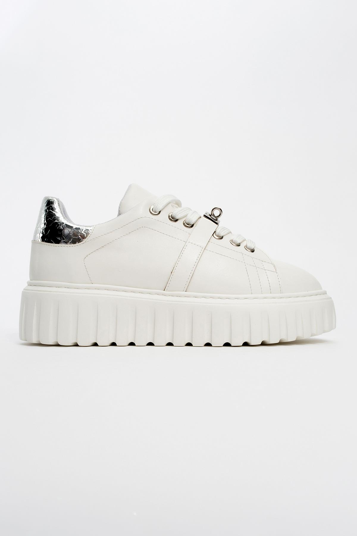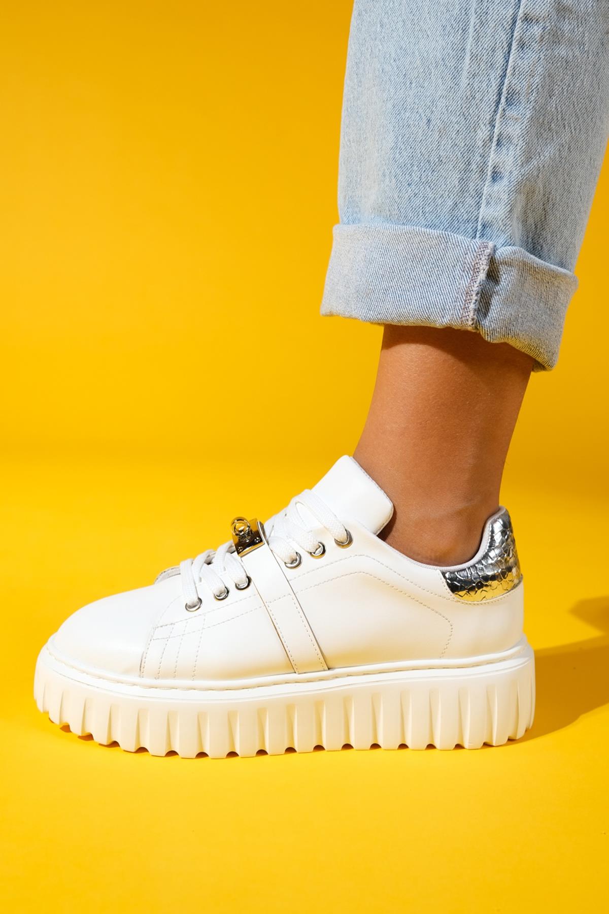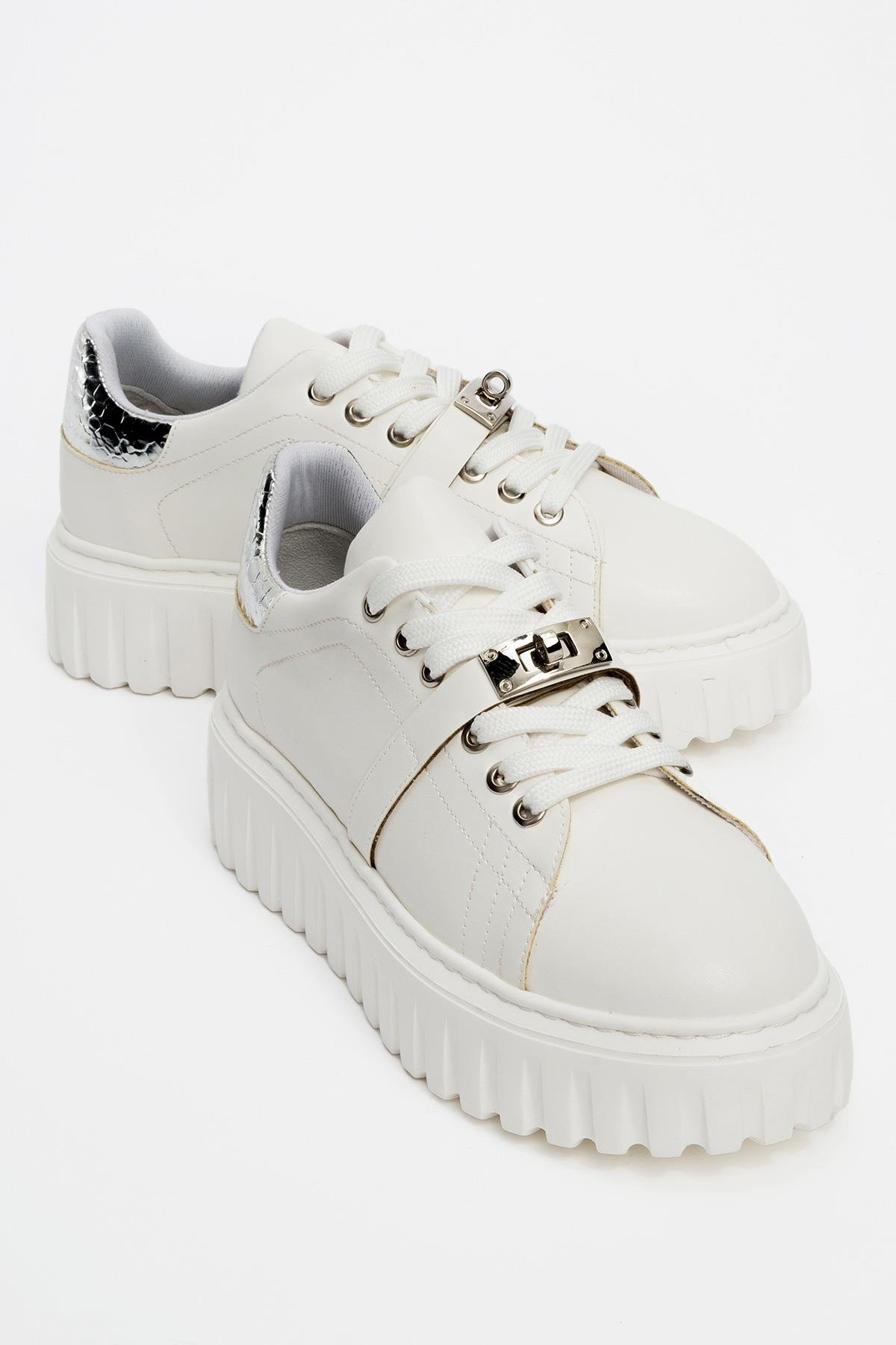 ANDRO Beyaz Gümüş Kalın Tabanlı Kadın Spor Ayakkabı (223-2418-2-BEYAZ)