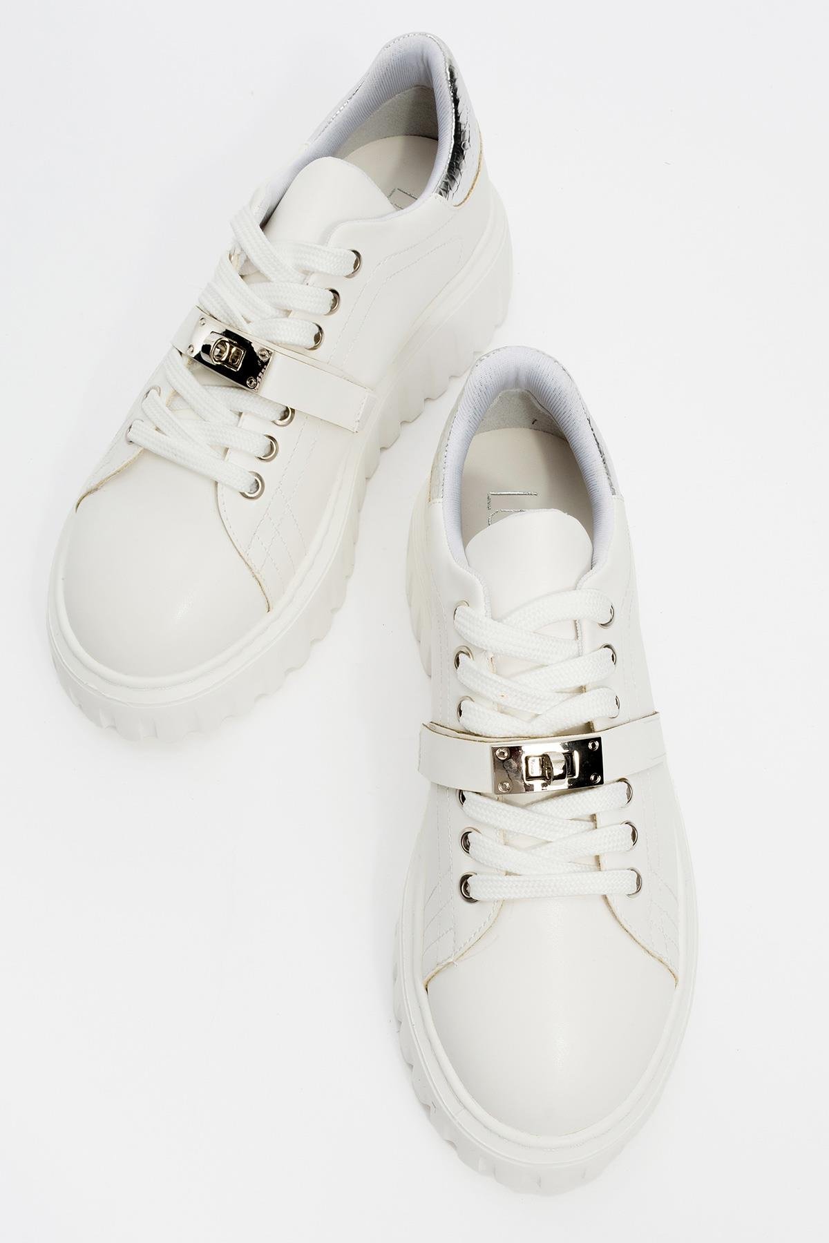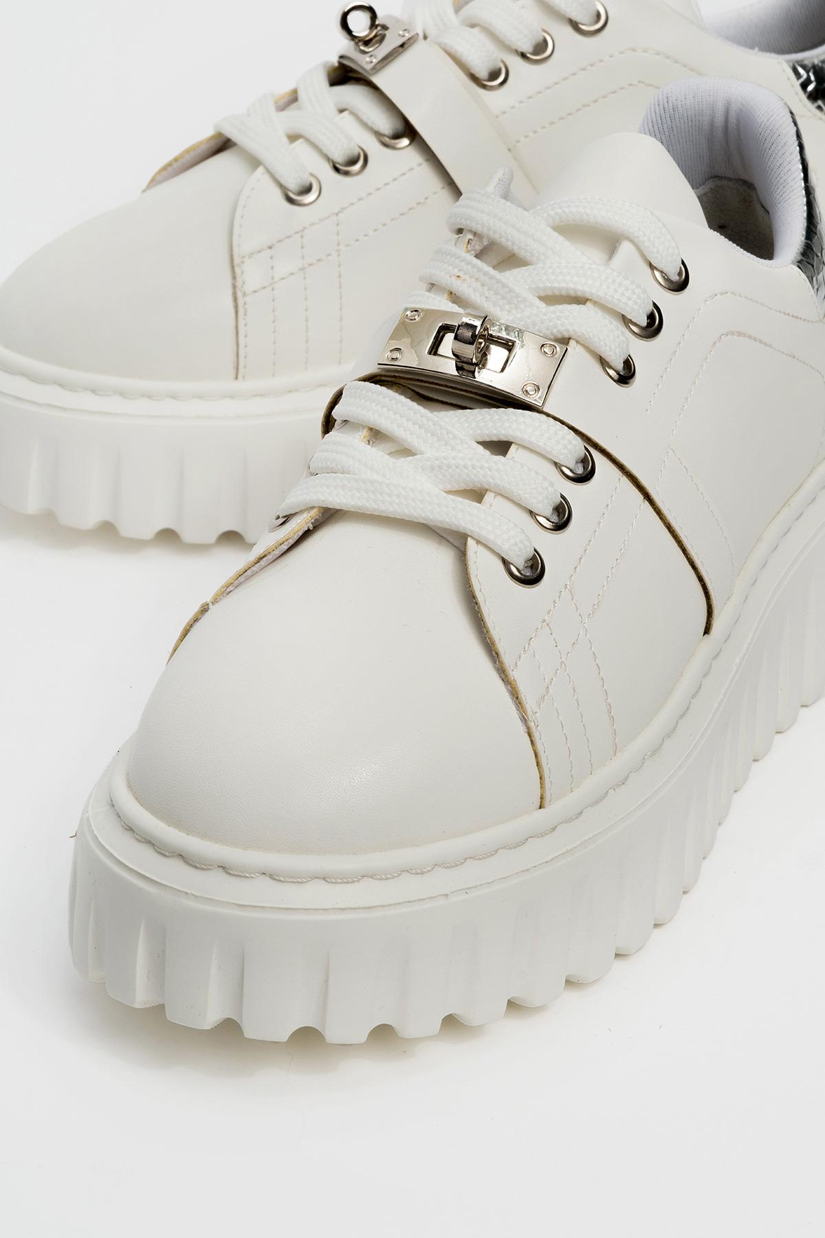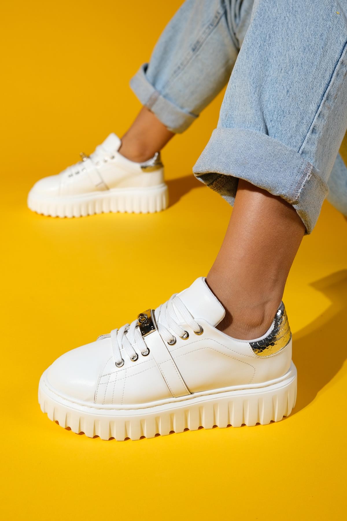 ANDRO Beyaz Gümüş Kalın Tabanlı Kadın Spor Ayakkabı (223-2418-2-BEYAZ)