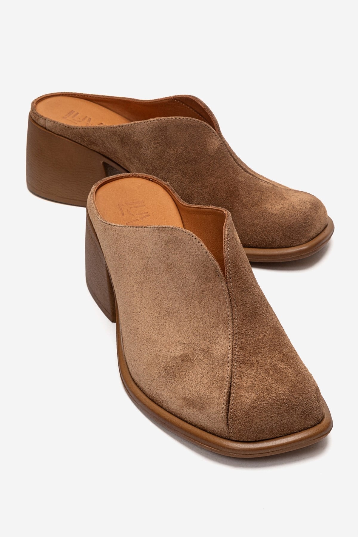 ARDENT Taba Süet Hakiki Deri Önü Kapalı Kadın Kalın Topuklu Terlik (186-1070-4-TABA SUET)