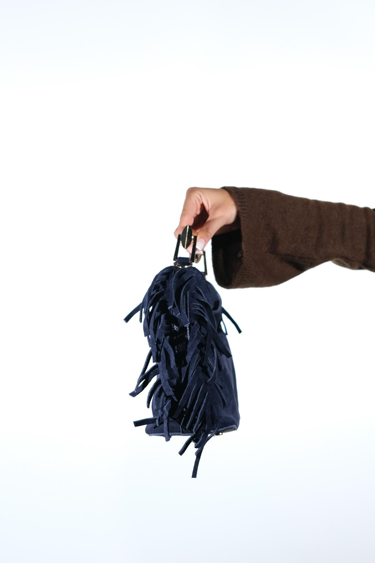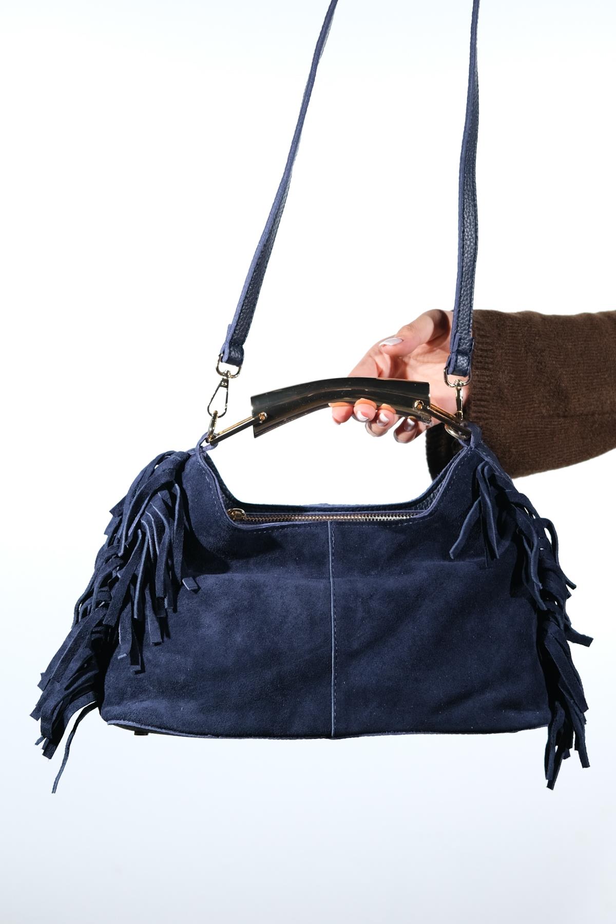 Süet kısımları hakiki deridir, askıları ve mat kısımları suni deridir. Tek gözden oluşmaktadır, fermuar kapamalıdır, uzun askısı mevcuttur, içi astarlıdır. Günlük kullanıma uygundur. %100 el işçiliği ile üretilmiştir.