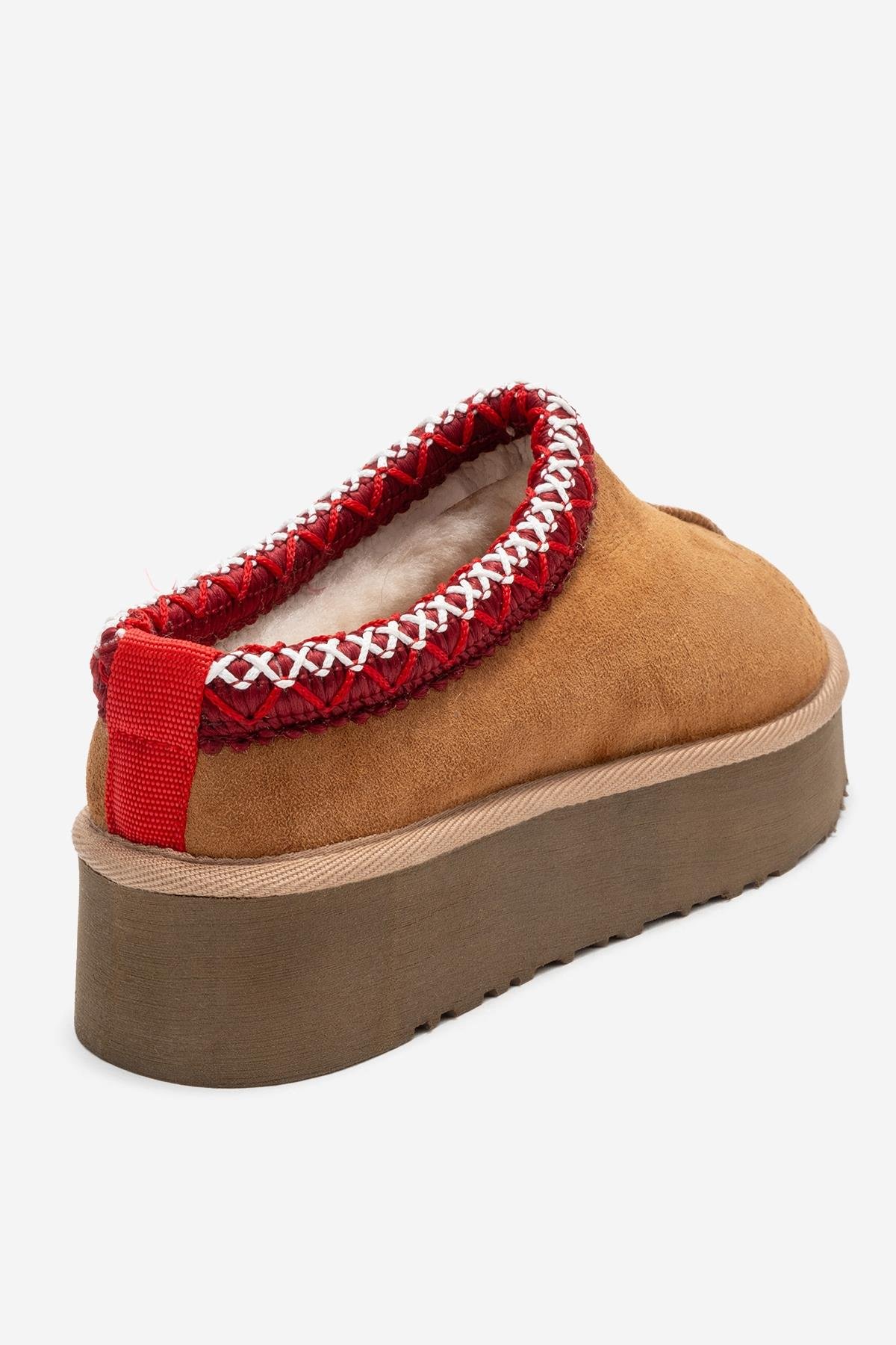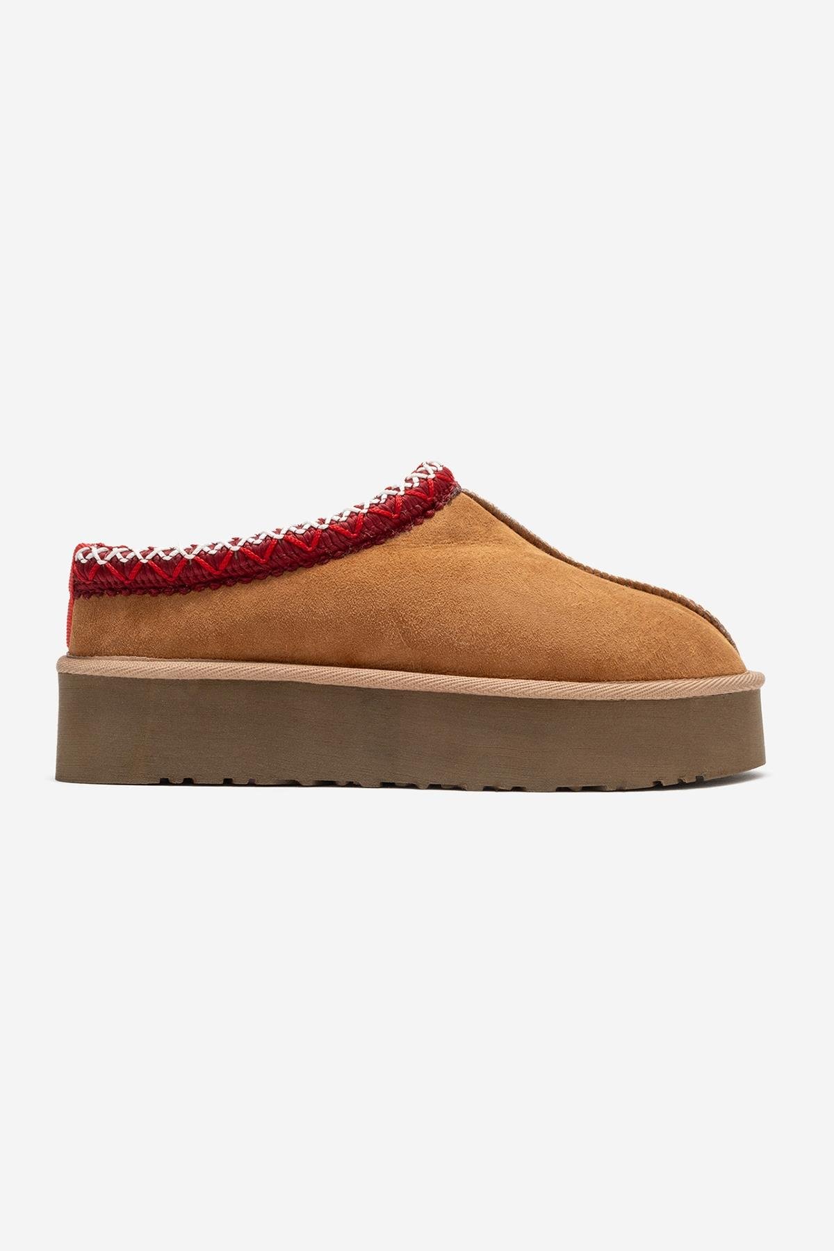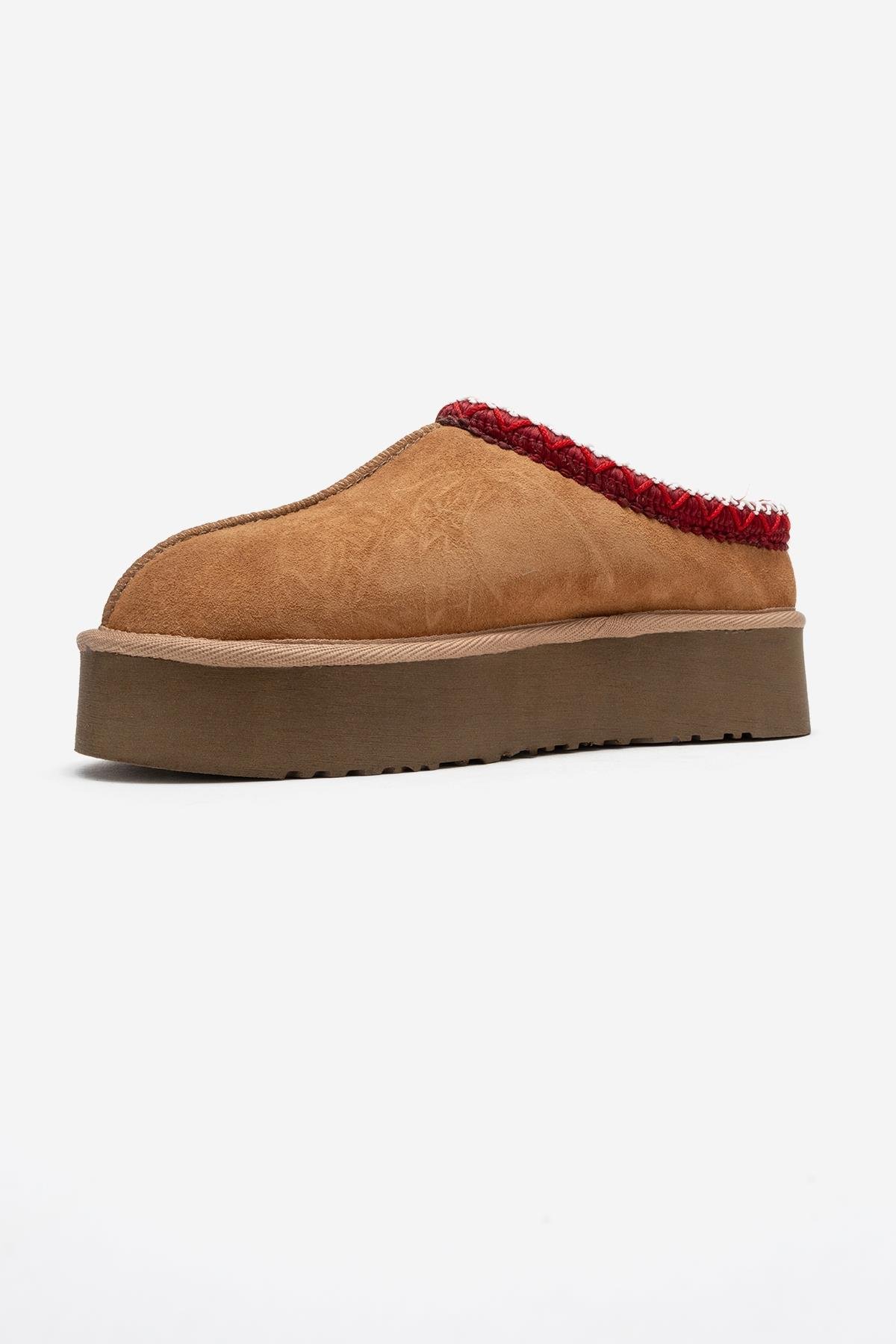 AVELIA Taba Süet Hakiki Deri Dikişli Kadın Kalın Tabanlı Kışlık Terlik (183-605-2-TABA SUET)