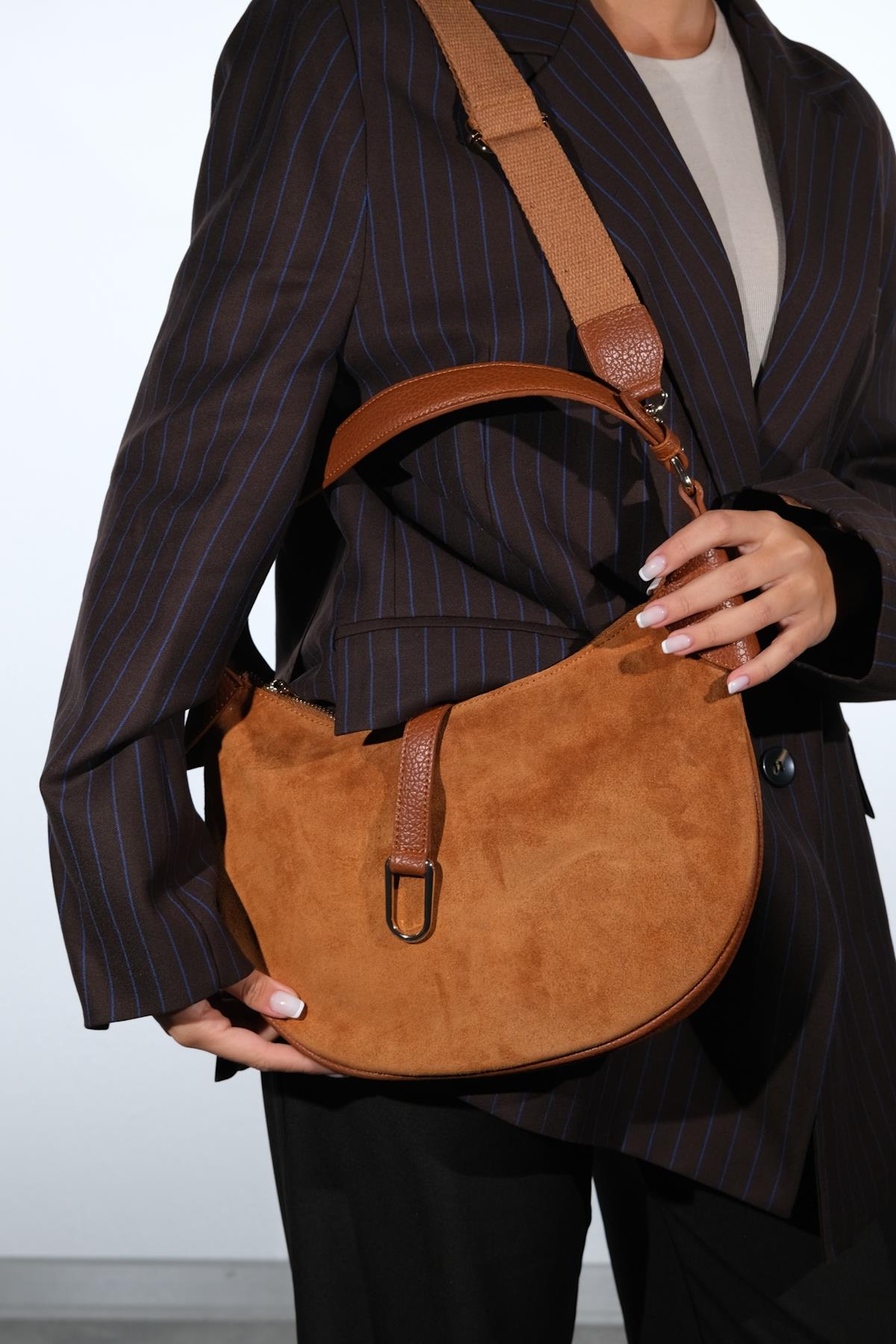 Süet kısımları hakiki deridir, askıları ve mat kısımları suni deridir. Fermuar kapamalıdır, uzun askısı mevcuttur. içi astarlıdır. Günlük kullanıma uygundur. %100 el işçiliği ile üretilmiştir.