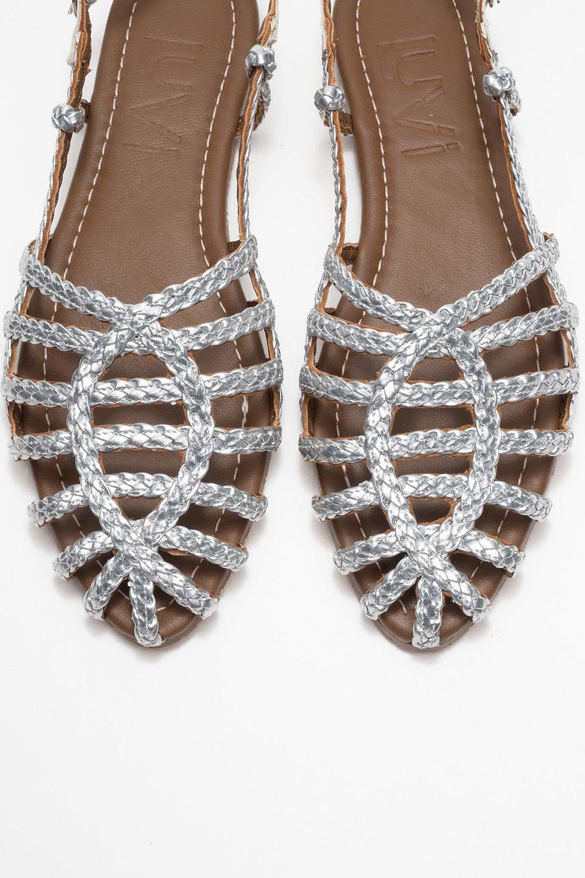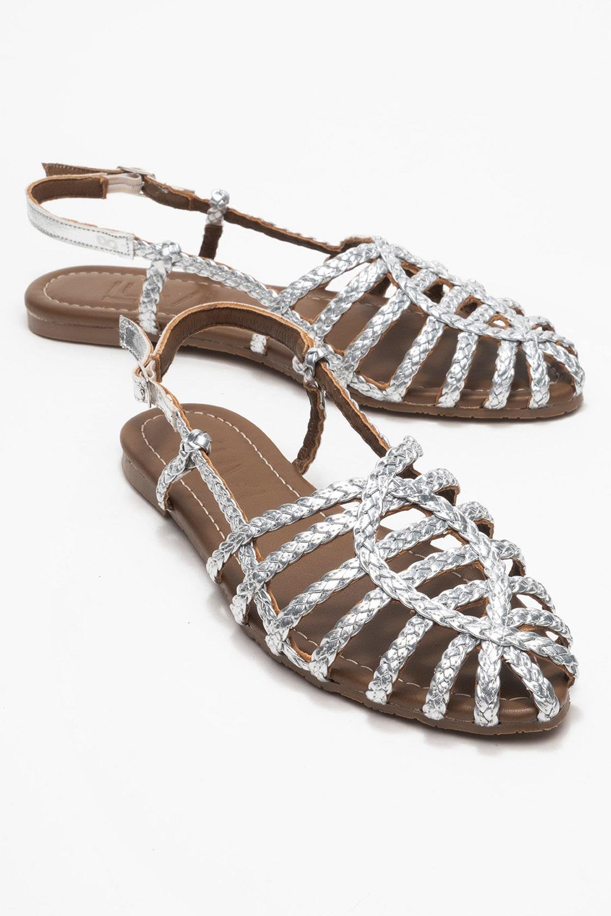 Modern çizgilerle buluşan gümüş örgü detayları, CLAUDIA’ya göz alıcı bir duruş kazandırıyor. İçi hakiki deri olan bu özel tasarım, gün boyu konfor sağlarken metalik parlaklığıyla stilinize sofistike bir dokunuş ekliyor. Hem şehir kombinlerine ışıltı katmak hem de yaz akşamlarında fark yaratmak isteyenler için ideal bir seçim. CLAUDIA ile her adım ışıldasın!
