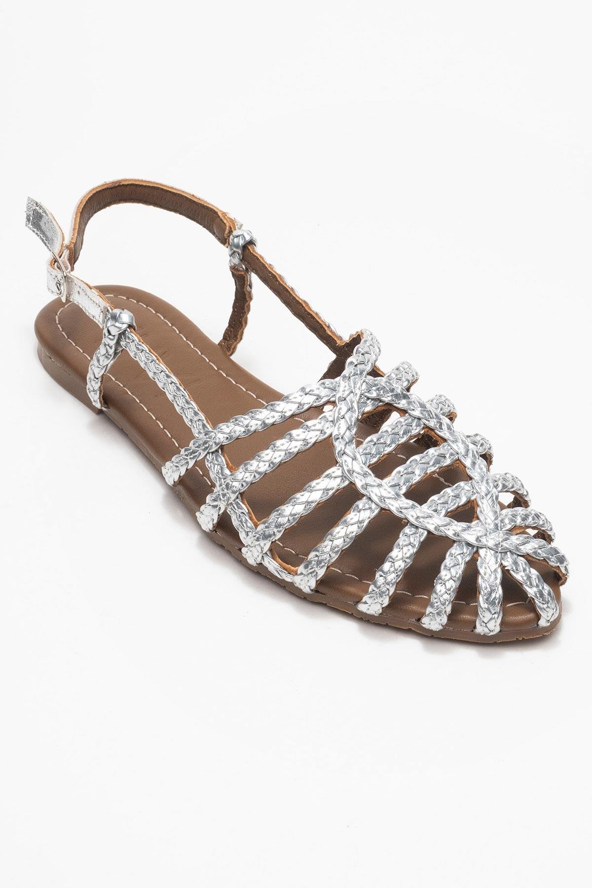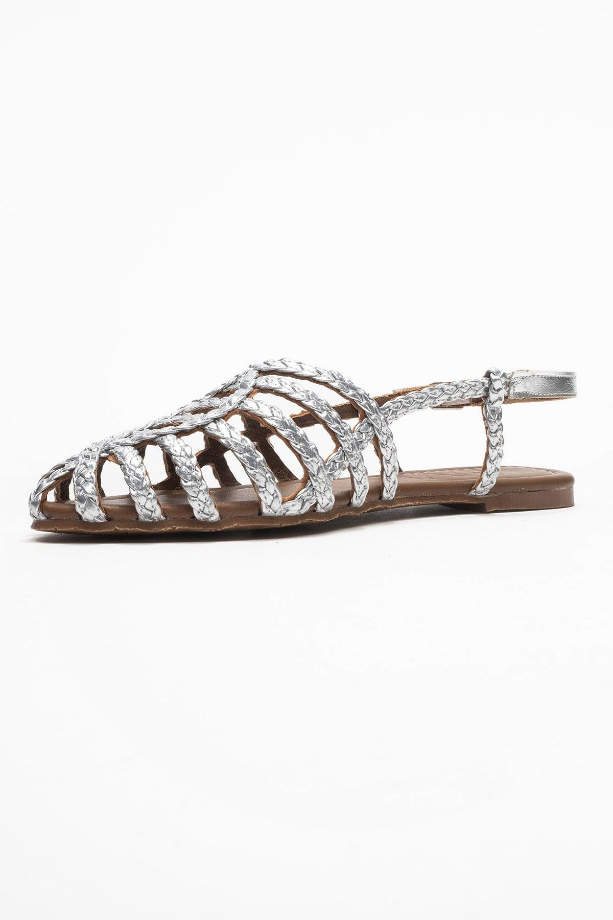 CLAUDIA Gümüş Örgü Kafes Tasarım Kadın Sandalet (176-1010-3-GUMUS ORGU)