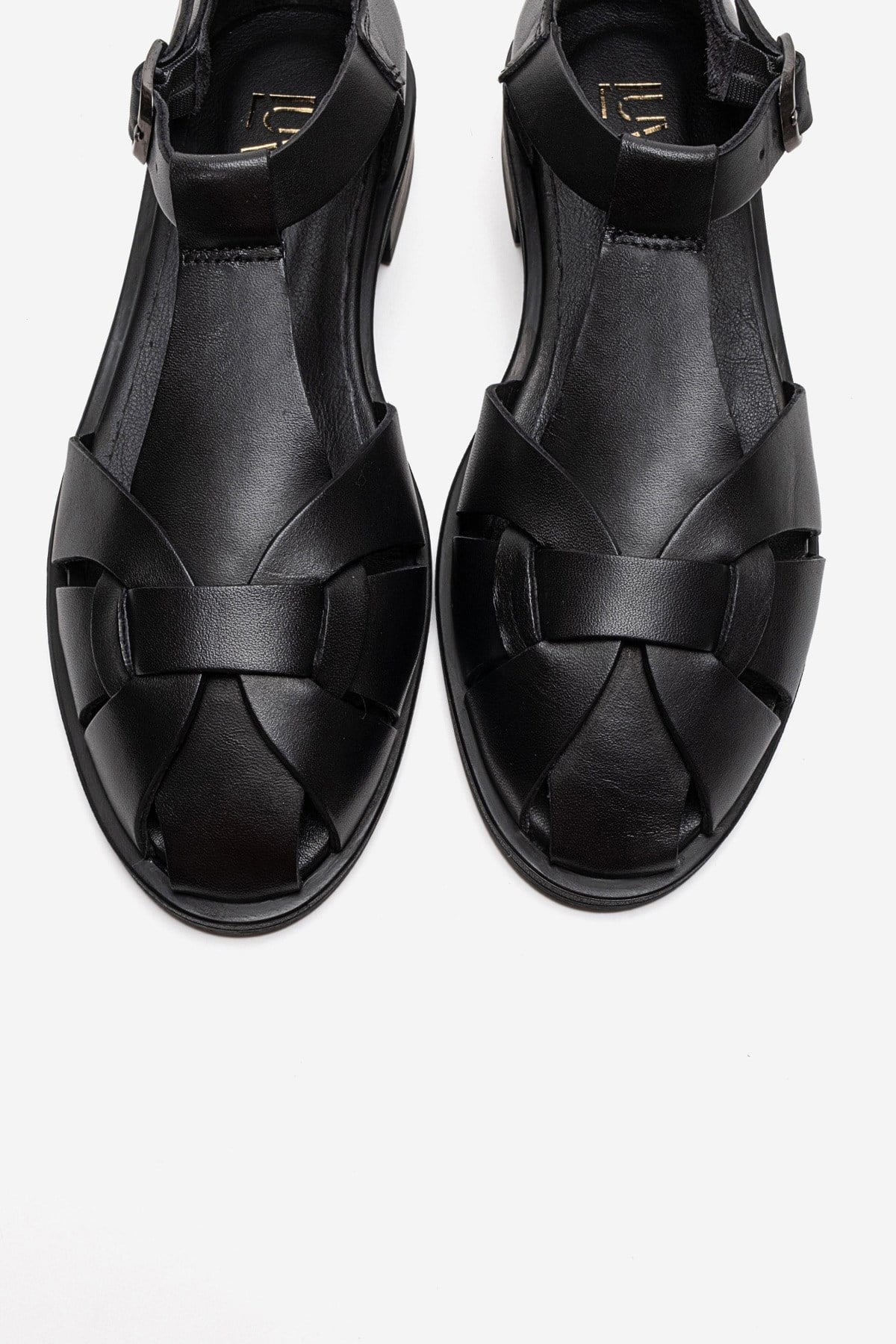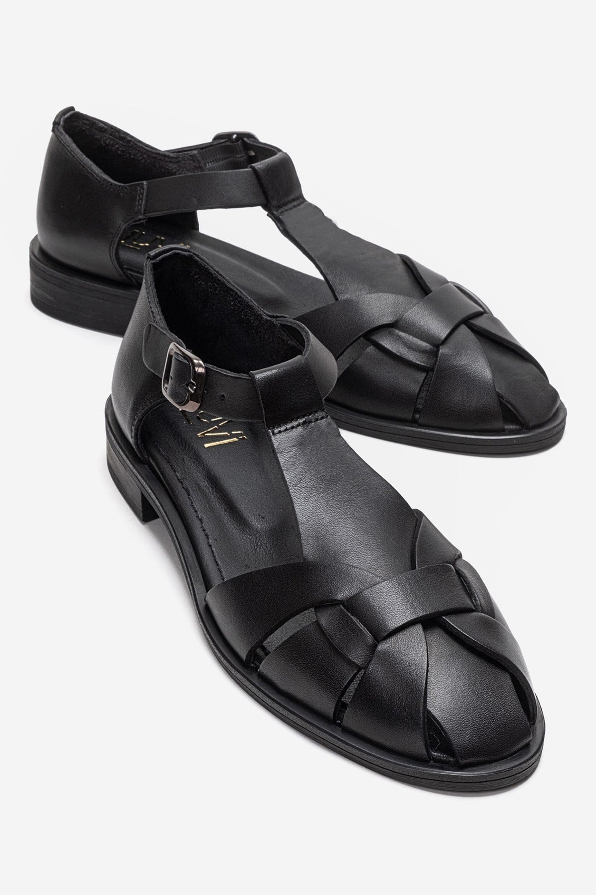 DEXARA Siyah Cilt Hakiki Deri Kadın Sandalet (171-200-1-SIYAH CILT)