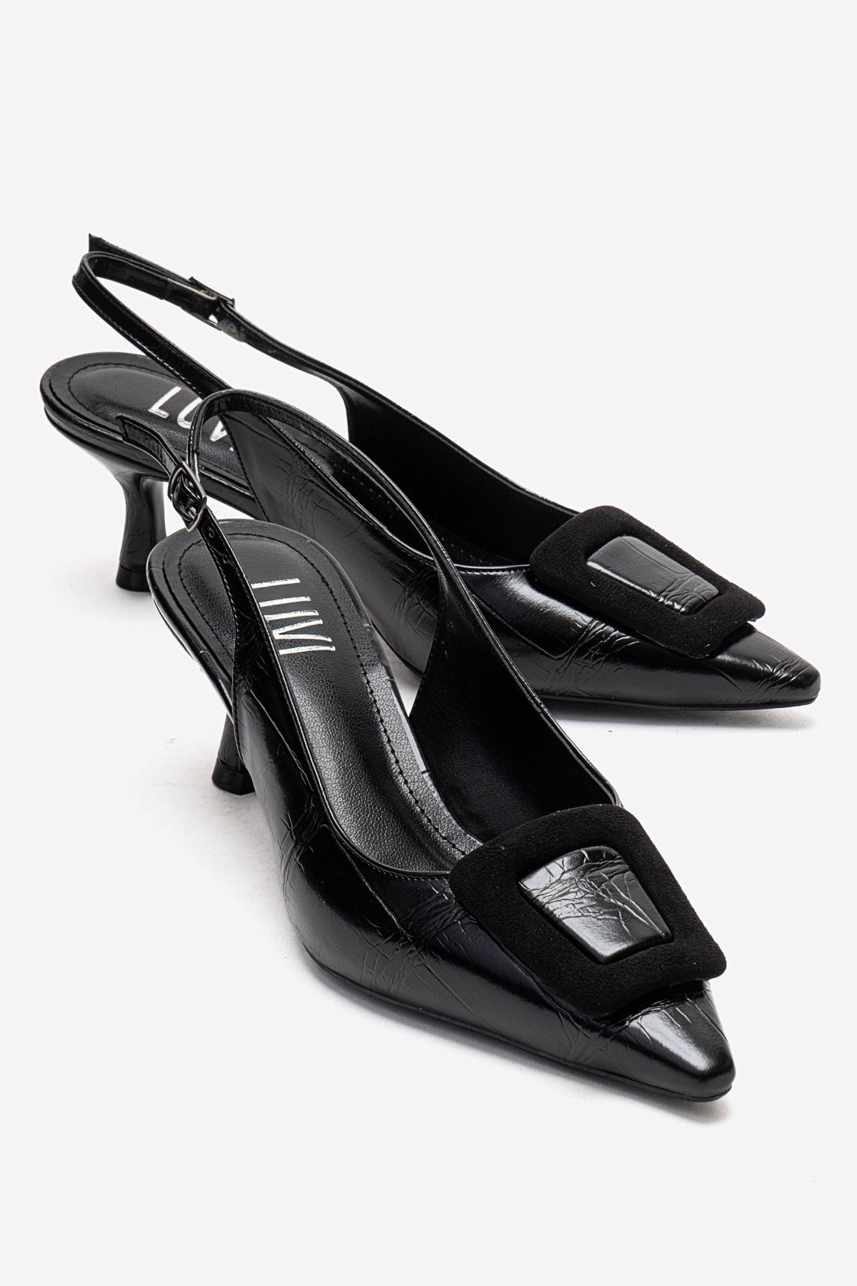 DUBLIN Siyah Baskı Tokalı Kadın Topuklu Ayakkabı (124-6628-1-SIYAH BASKI)