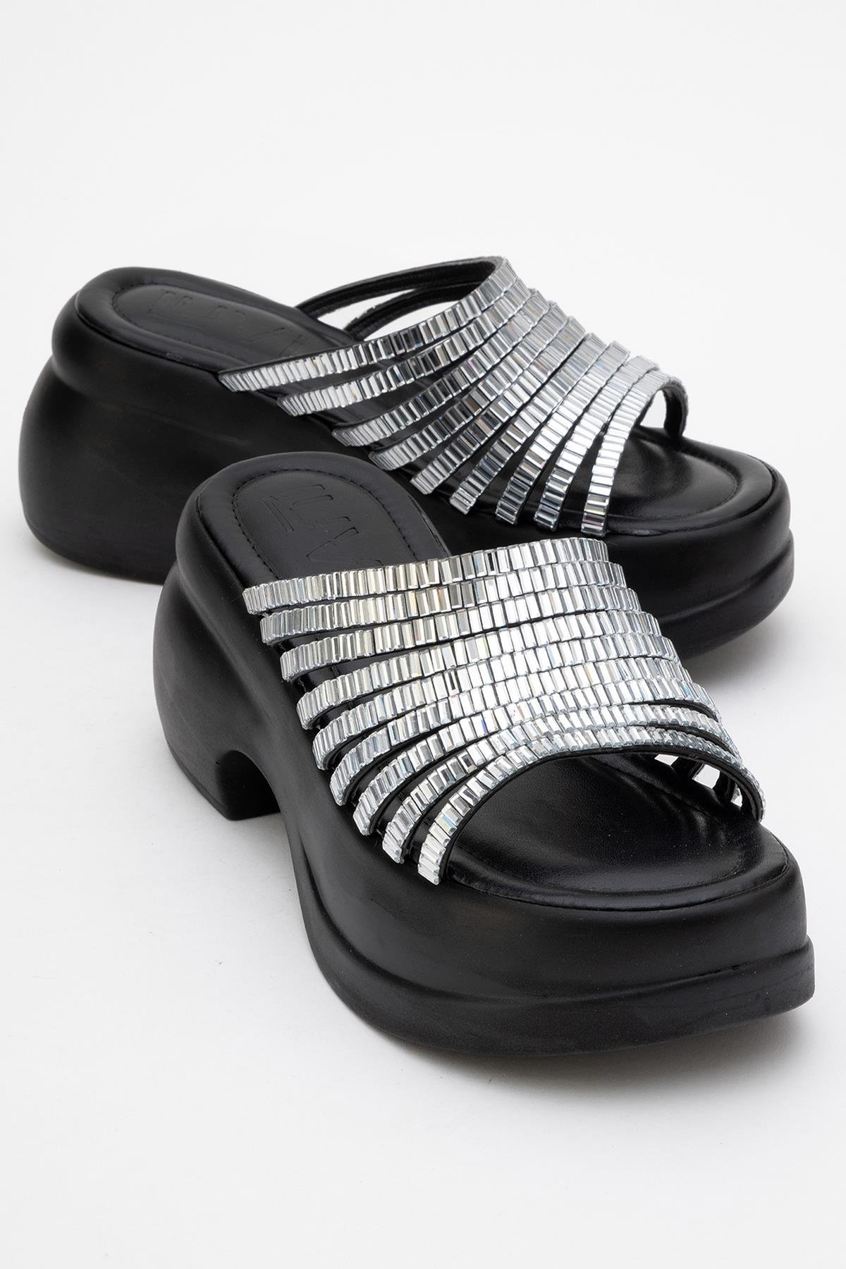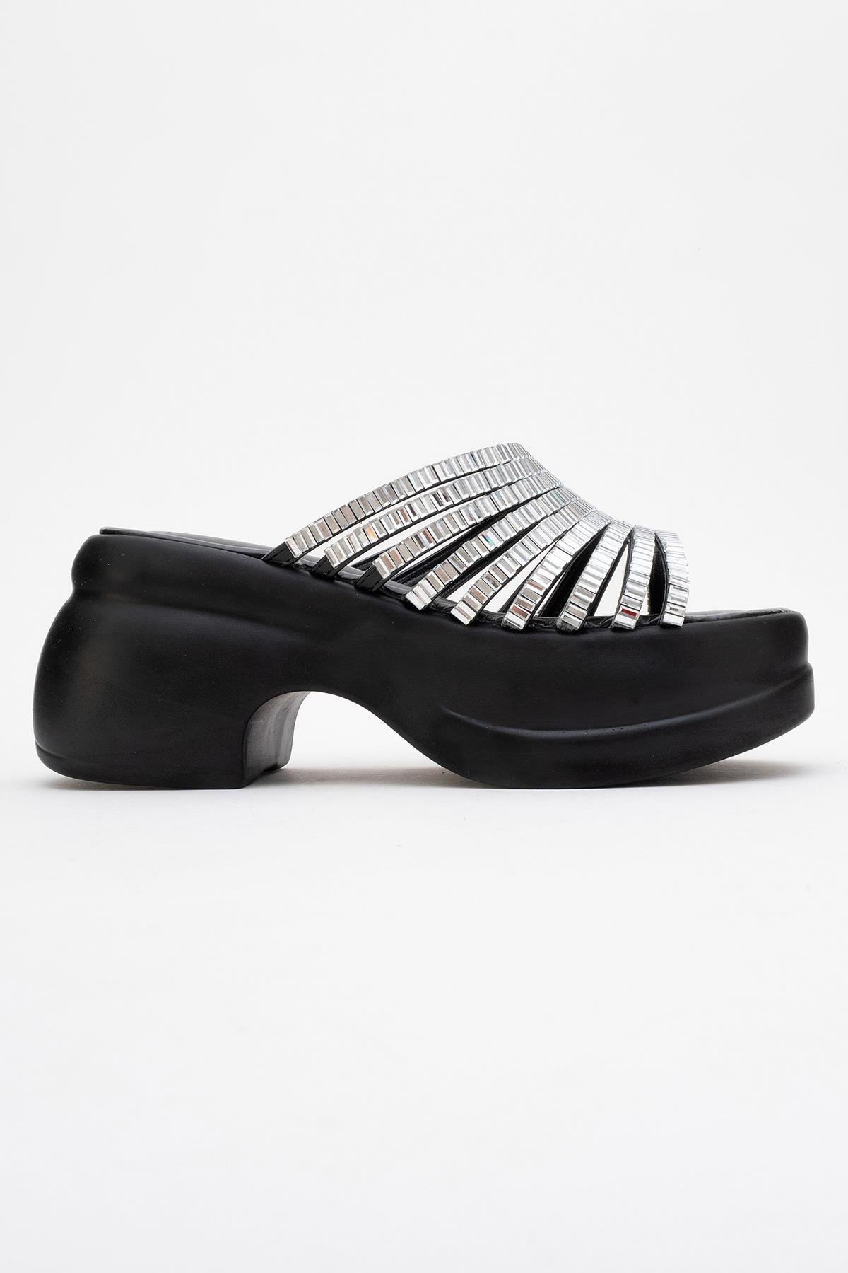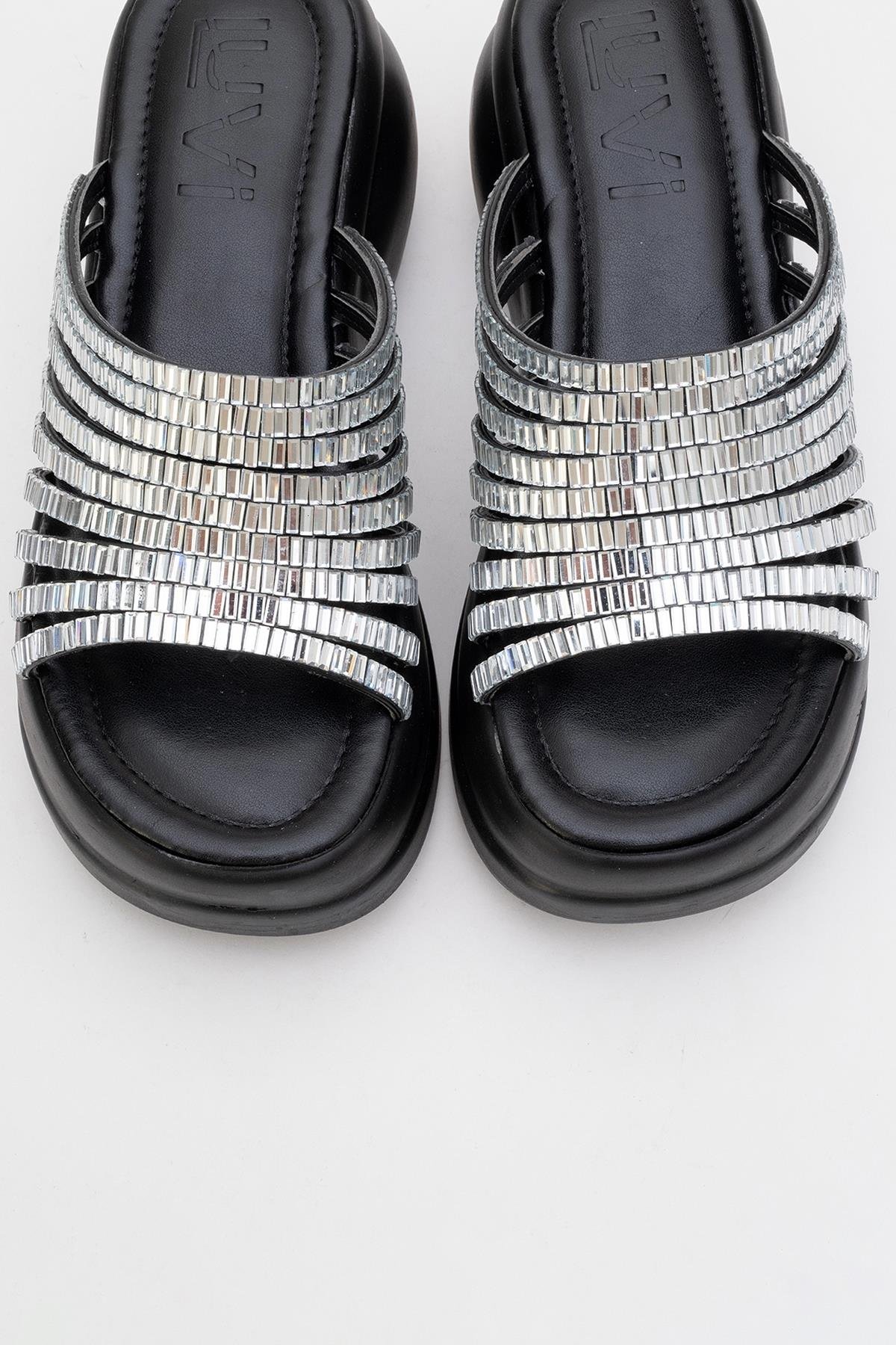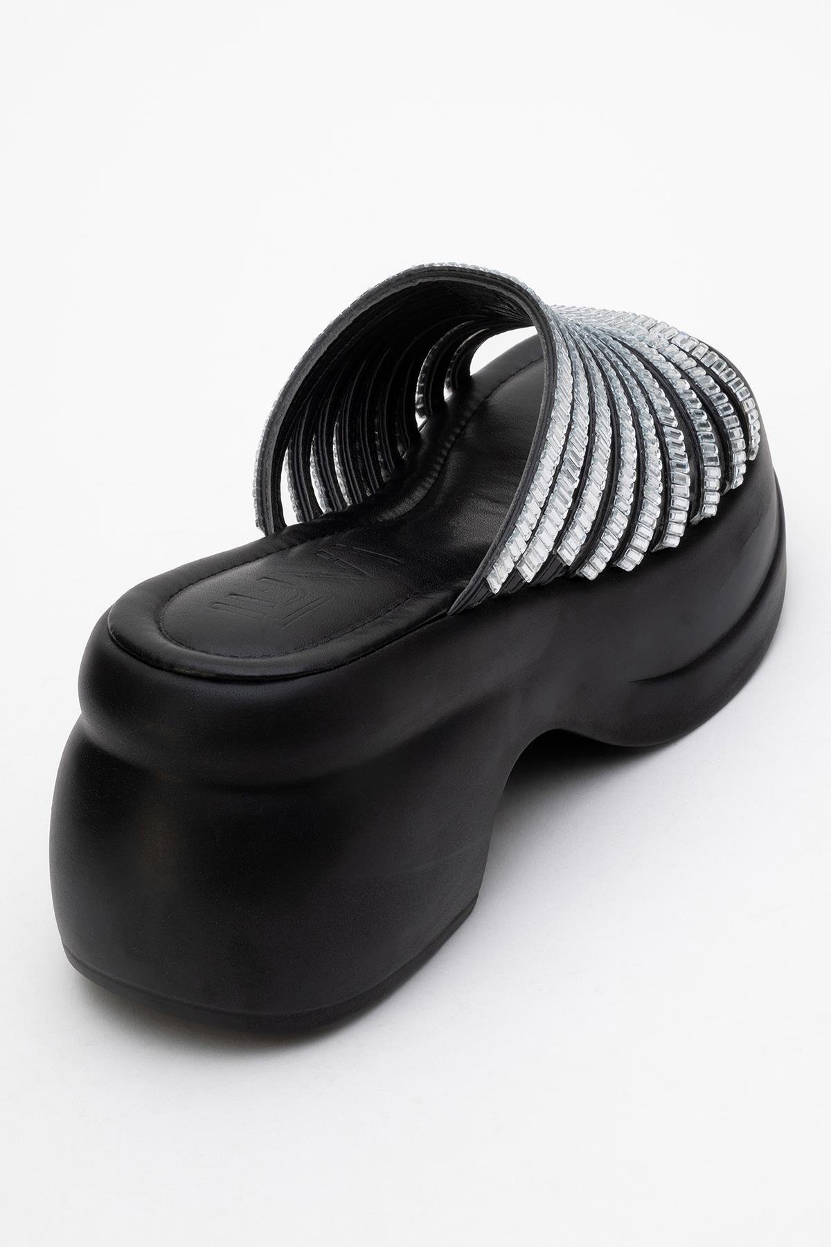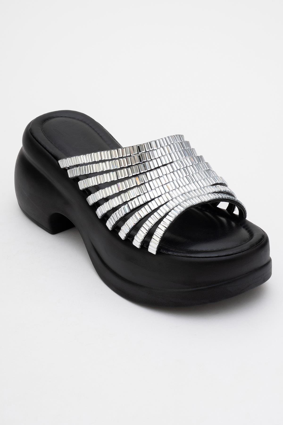 FIERRO Siyah Gümüş Taşlı Dolgu Tabanlı Kadın Terlik (137-310-1-SIYAH/GUMUS TASLI)
