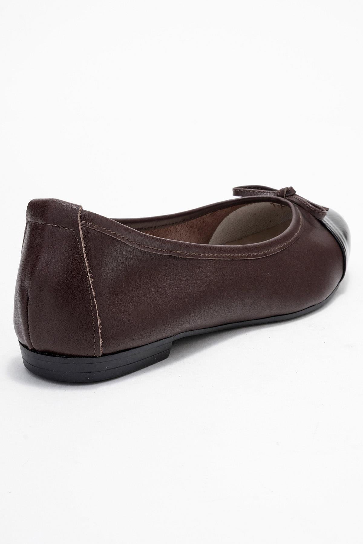 JENS Kahverengi-Siyah Rugan Hakiki Deri Fiyonklu Kadın Babet Ayakkabı (63-C03-4-KAHVERENGI/SIYAH CILT)