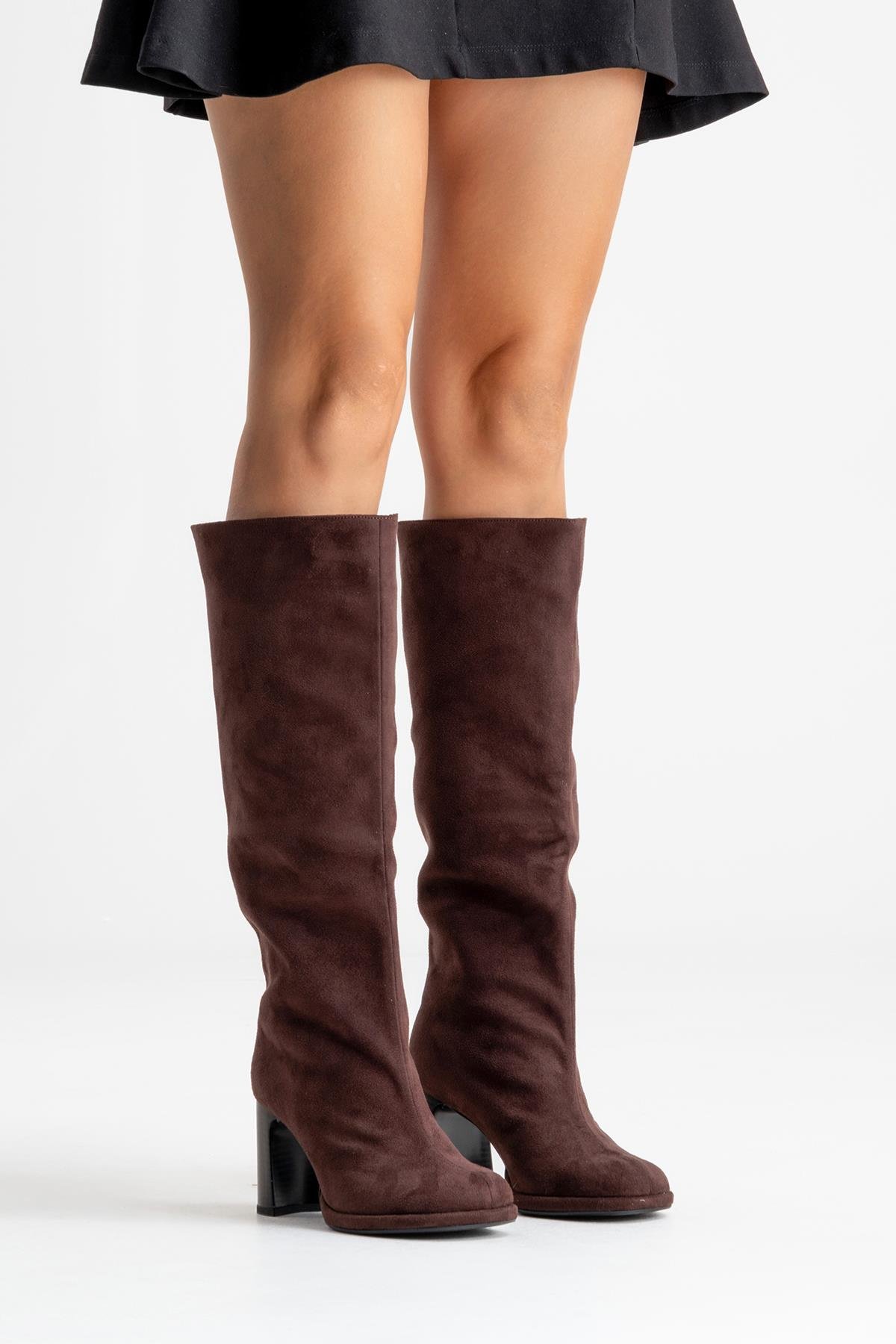 JOSETTE Kahverengi Süet Kadın Kalın Topuklu Çizme (124-8904-2-KAHVERENGI SUET)