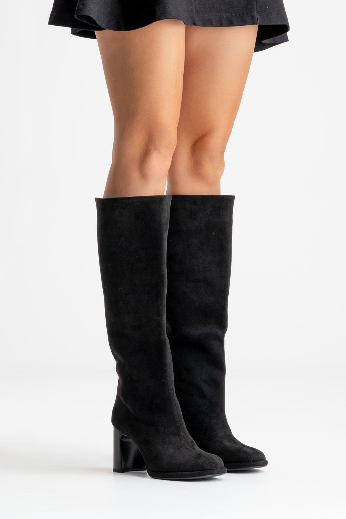 JOSETTE Siyah Süet Kadın Kalın Topuklu Çizme (124-8904-1-SIYAH SUET)