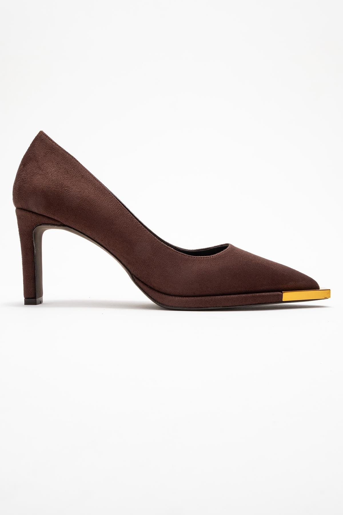 Yumuşak dokusuyla zamansız bir şıklık sunan LIORA, kahverengi süetin doğal asaletiyle altın detayların göz alıcı ihtişamını buluşturuyor. Mat süetin zarif dokusu, sofistike bir sadelik yaratırken, sivri burunda kullanılan altın metal dokunuş LIORA'ya modern ve çarpıcı bir karakter kazandırıyor. Blok topuğun dengeli formu, feminen silueti öne çıkarırken, süetin sıcak kahverengisi her stile uyum sağlayan rafine bir duruş sunar. Altın detay ise her adımı ışıltılı ve iddialı kılar. Gündüzden geceye, işten özel davetlere uzanan çok yönlü kullanımıyla LIORA, süetin zarafeti ve altının ışıltısını tek bir potada eriten eşsiz bir parça olarak gardırobunuzun yıldızı olmaya aday.