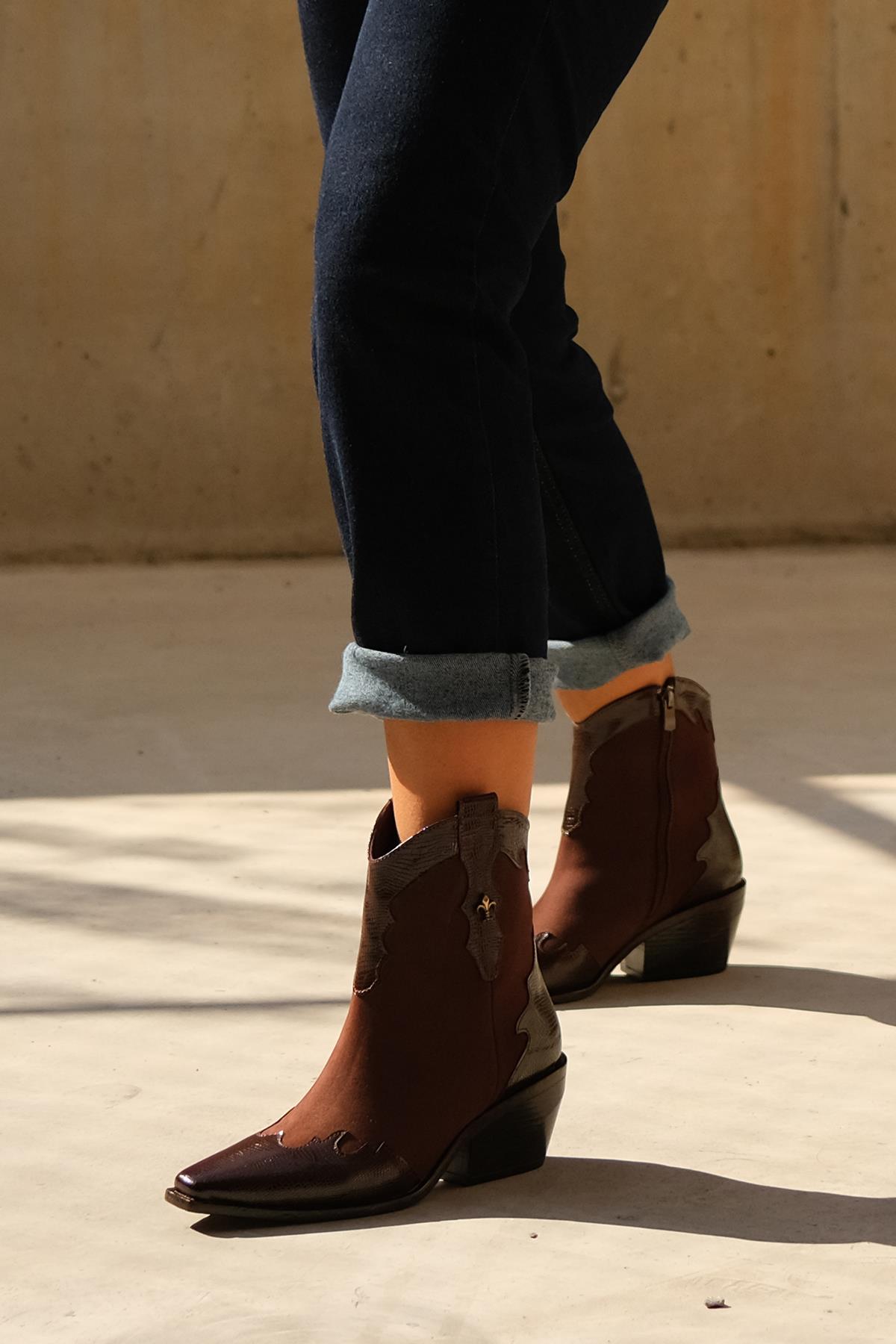 Western esintilerini modern şehir şıklığıyla buluşturan LOEL, karakterli tarzını her adımda hissettirmek isteyen kadınlar için tasarlandı. Baskılı deri ve süetin ustalıkla birleştiği LOEL; krokodil dokulu parlak deri detaylarıyla dikkat çekerken, sıcak kahverengi süet gövdesiyle yumuşak ve zarif bir denge sunuyor. Yan kısmındaki fonksiyonel fermuar sayesinde kolay giyilip çıkarılırken, hafif açılı topuğu boyu nazikçe yükseltir ve uzun süreli kullanımlarda bile konfor sağlar. Sivri burun formu ise silüete güçlü ve feminen bir dokunuş katıyor. İster jeanlerle bohem bir hava yaratın, ister elbiselerle sofistike bir stil… LOEL, sezonun en iddialı kombinlerinin yıldızı olmaya hazır.