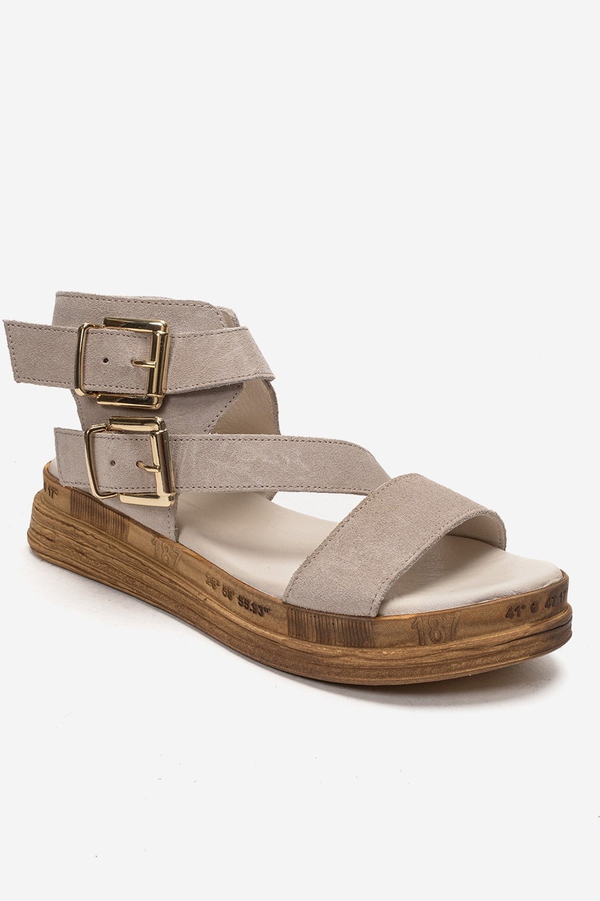 LORENTIS Bej Süet Hakiki Deri Çift Tokalı Kadın Sandalet (171-10-4-BEJ SUET)