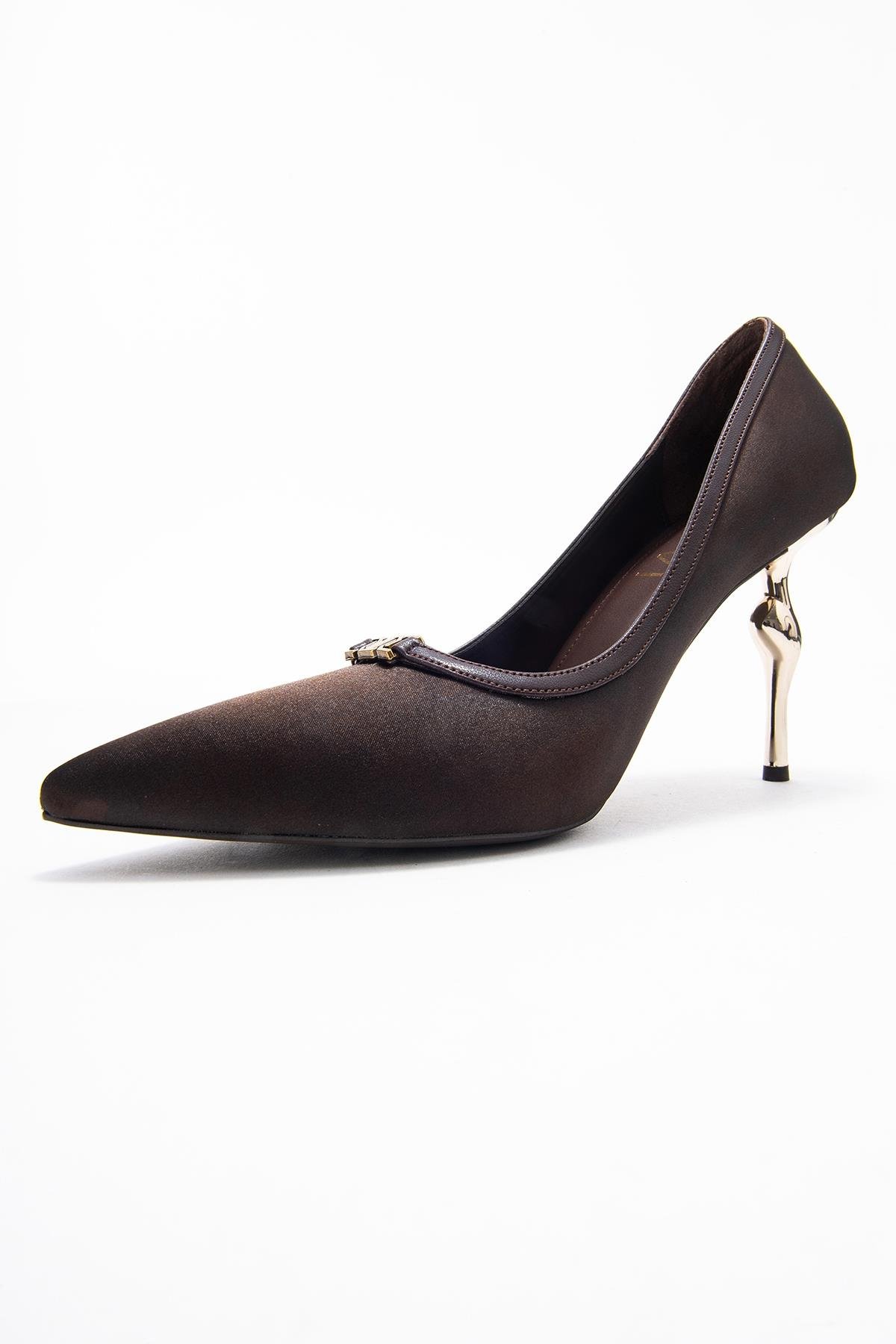 MILOS Kahverengi Saten Tokalı Kadın Topuklu Ayakkabı (80-9076-2-KAHVERENGI SATEN)