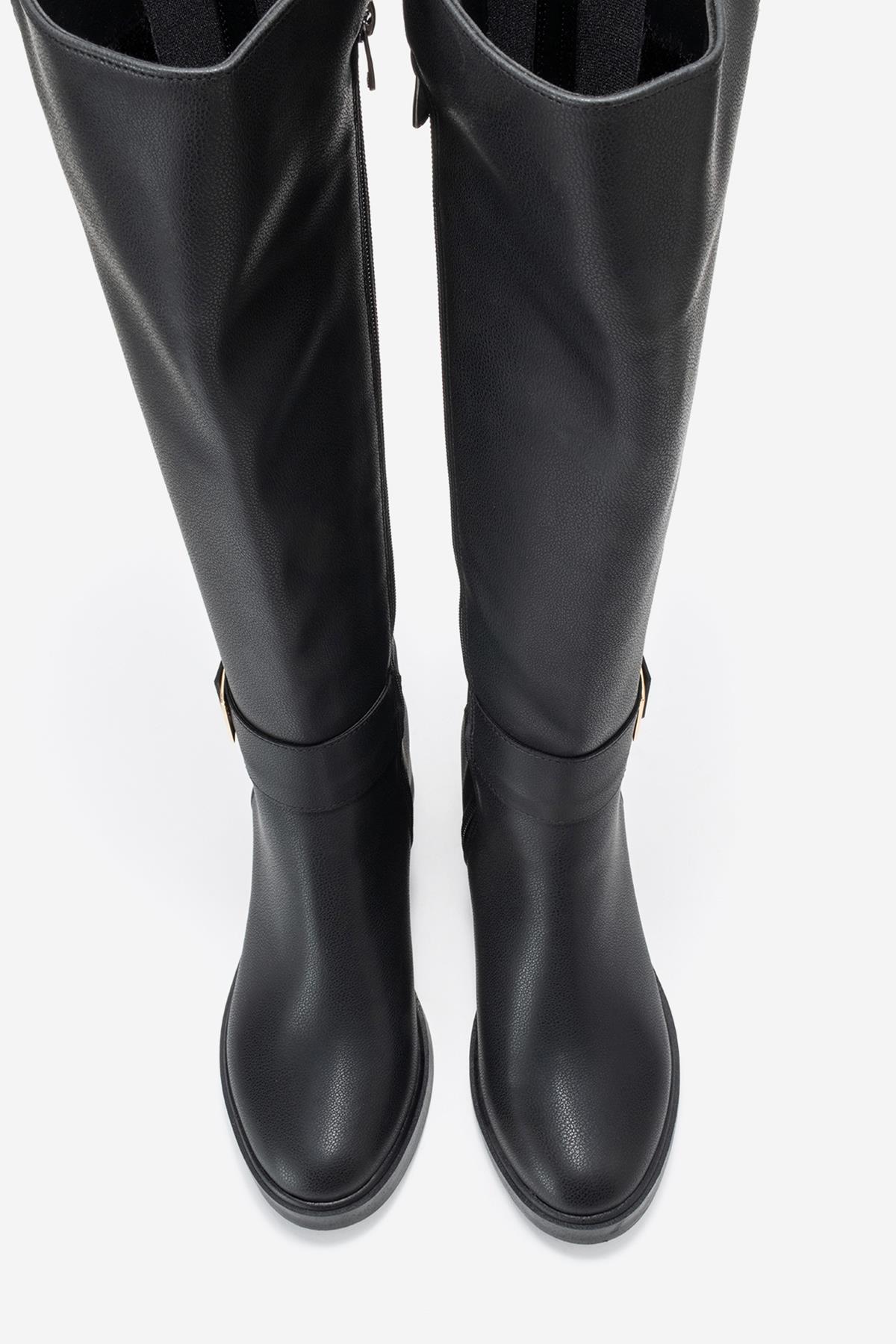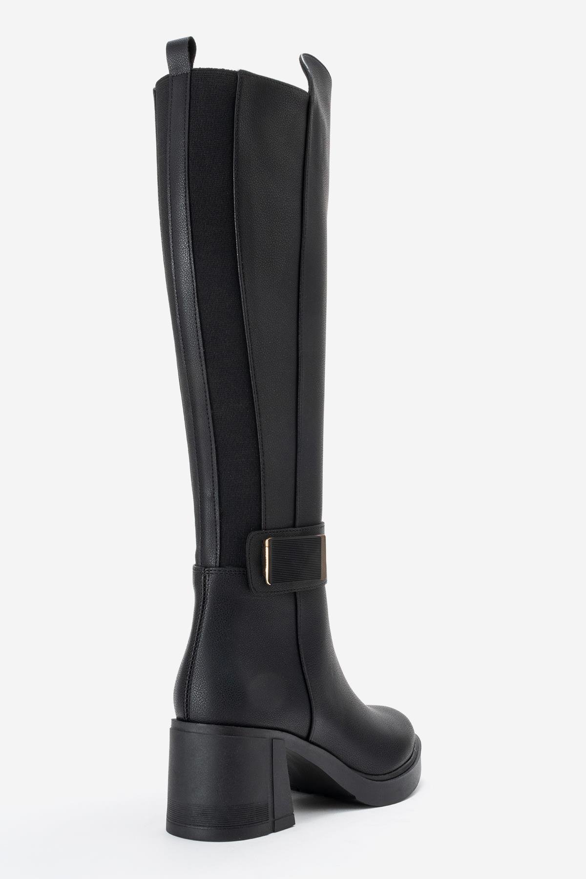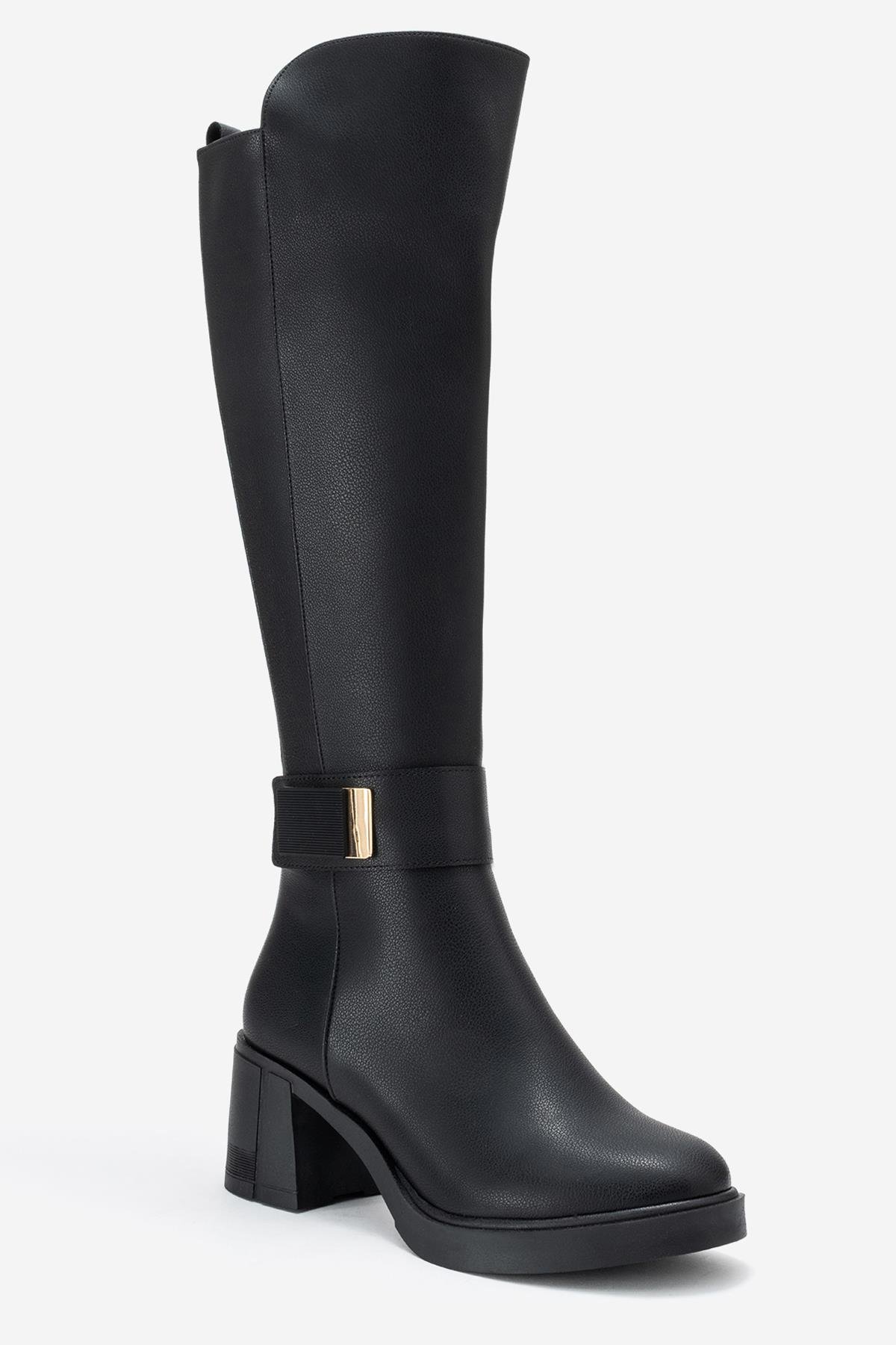 MORENİ Siyah Cilt Streç Detaylı Tokalı Kadın Kalın Topuklu Çizme (98-5285-1-SIYAH CILT)