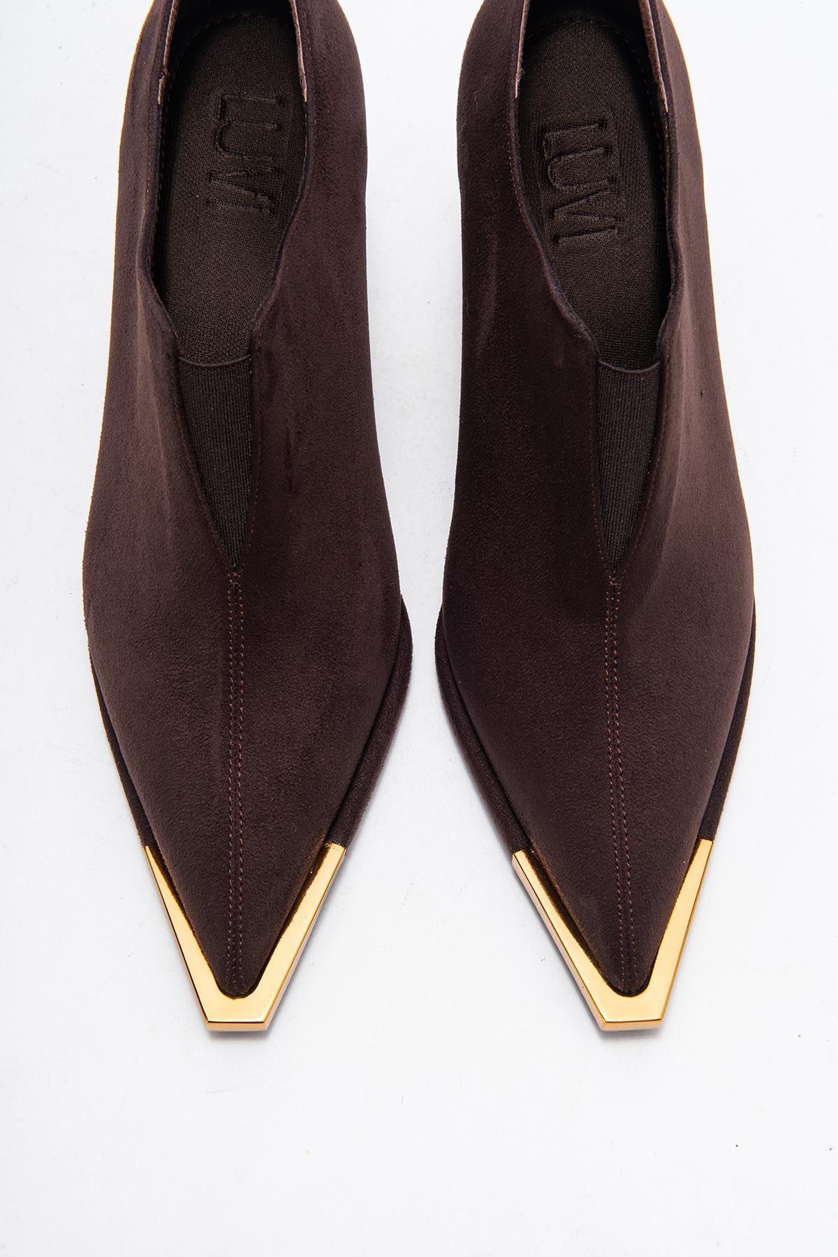 NIVA Kahverengi Süet Altın Detaylı Lastikli Kadın Bilekte Topuklu Ayakkabı (225-1830-2-KAHVERENGI SUET)