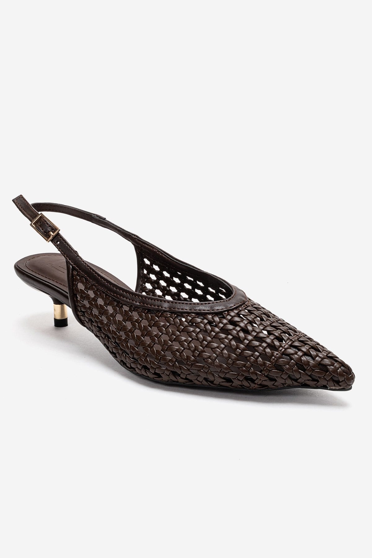 ORELIS Koyu Kahverengi Örgü Desenli Kadın Kısa Topuklu Ayakkabı (141-3438-6-KOYU KAHVERENGI ORGU)