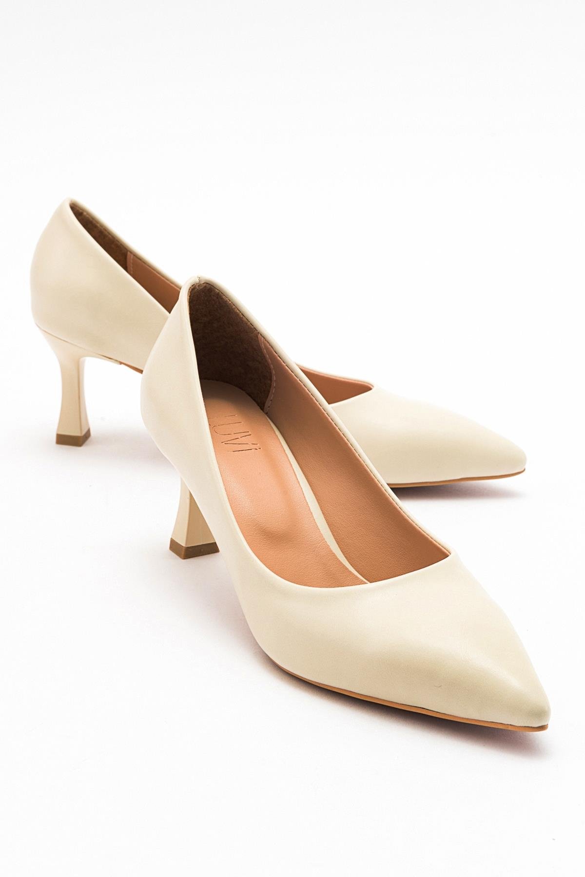 PEDRA Ekru-Bej Cilt Kadın Topuklu Ayakkabı (101-420-5-EKRU/BEJ CILT)