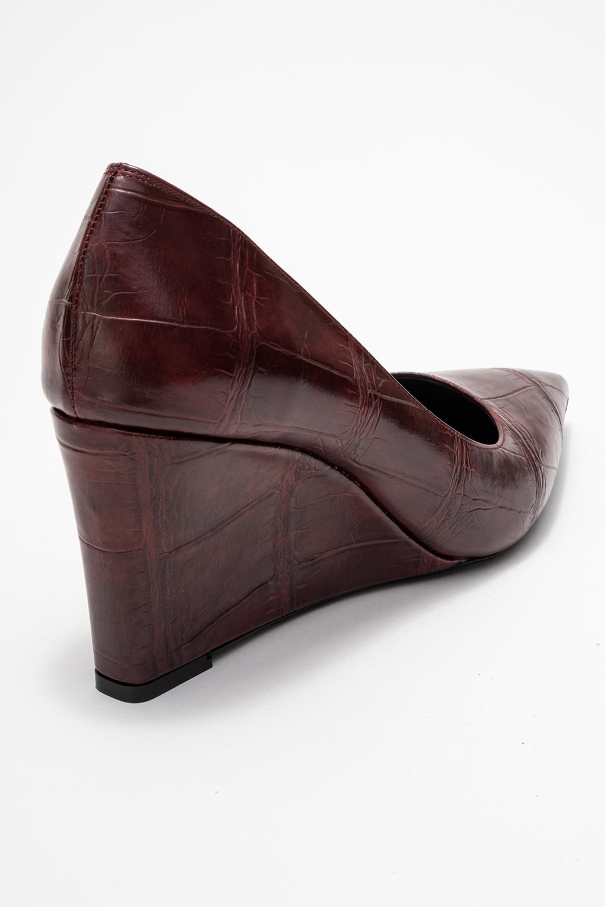 Güçlü silüeti ve sofistike havasıyla PUERA, modern şıklığı yeniden yorumluyor. Konforlu dolgu topuğu, bordo krokodil desenli deriyle birleşerek iddialı ve zarif bir duruş sergiliyor. Attığınız her adımda özgüven ve stil mesajı veriyor. Sivri burun tasarımı modele feminen ve şık bir karakter katarken, dikkat çeken formu sayesinde girdiğiniz her ortamda öne çıkmanızı sağlar. Ofiste güçlü bir görünüm ya da özel davetlerde etkileyici bir stil oluşturmak için ideal bir seçimdir. Bordo tonunun zarafetiyle kolayca kombinlenen PUERA, “hem elegan hem dikkat çekici” görünmek isteyen kadınlara hitap ediyor. Dolgu topuğun sağladığı rahatlık sayesinde şıklığı gün boyu konfordan ödün vermeden taşımanızı sağlar.