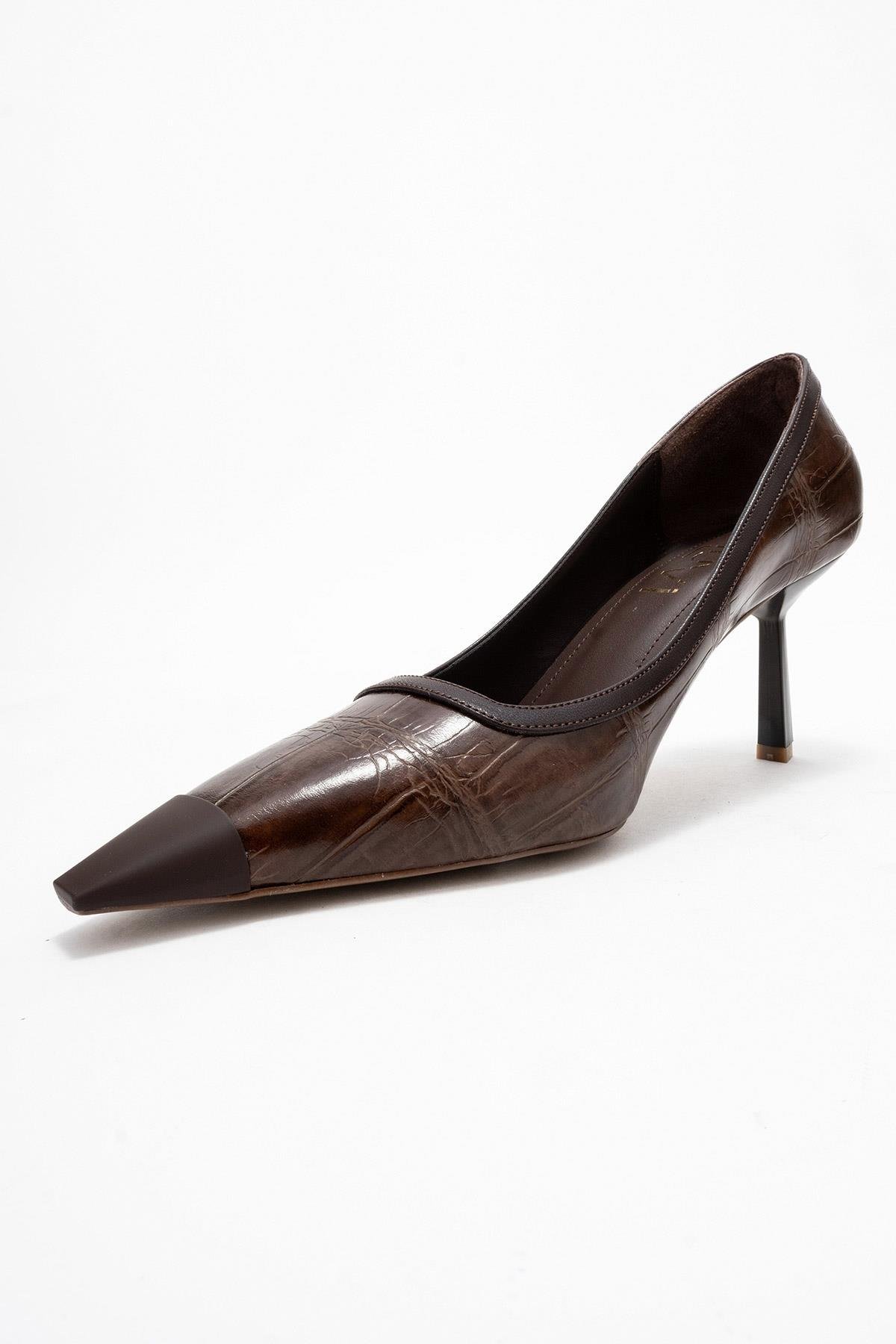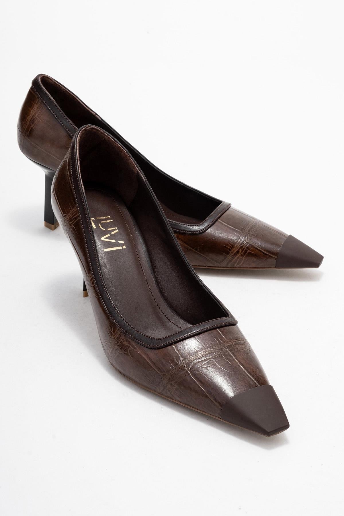 RONA Açık Kahverengi Baskı Mat Burunlu Kadın Topuklu Ayakkabı (80-10130-6-ACIK KAHVERENGI BASKI)