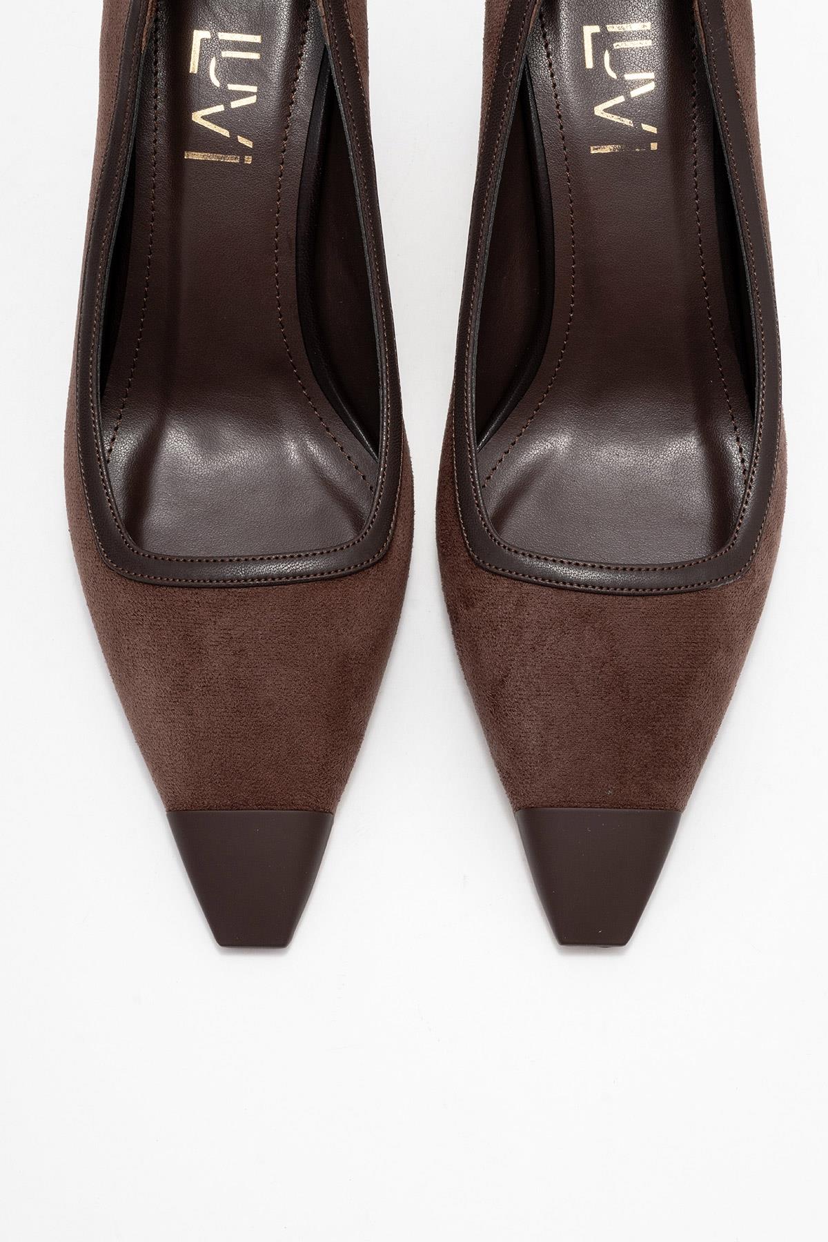 RONA Kahverengi Süet Mat Burunlu Kadın Topuklu Ayakkabı (80-10130-11-KAHVERENGI SUET)