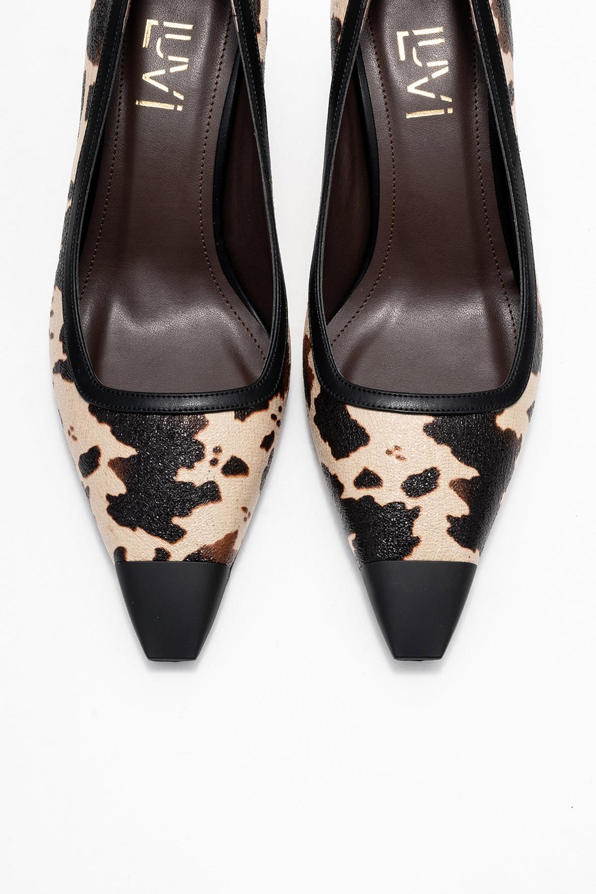 RONA Siyah Bej Desenli Mat Burunlu Kadın Topuklu Ayakkabı (80-10130-7-BEJ DESENLI)