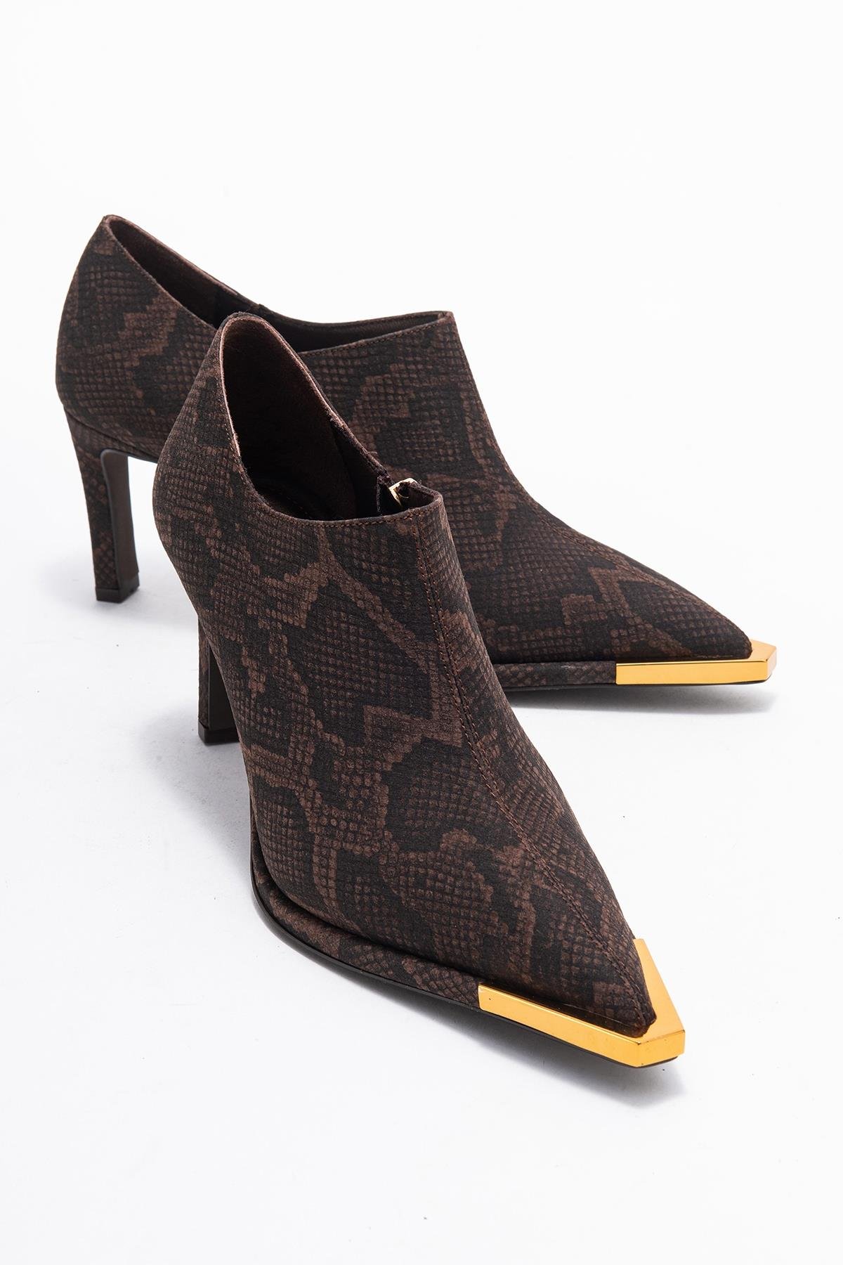 SONA Kahverengi Desenli Altın Detaylı Kadın Bilekte Topuklu Ayakkabı (225-1826-2-KAHVERENGI DESENLI)