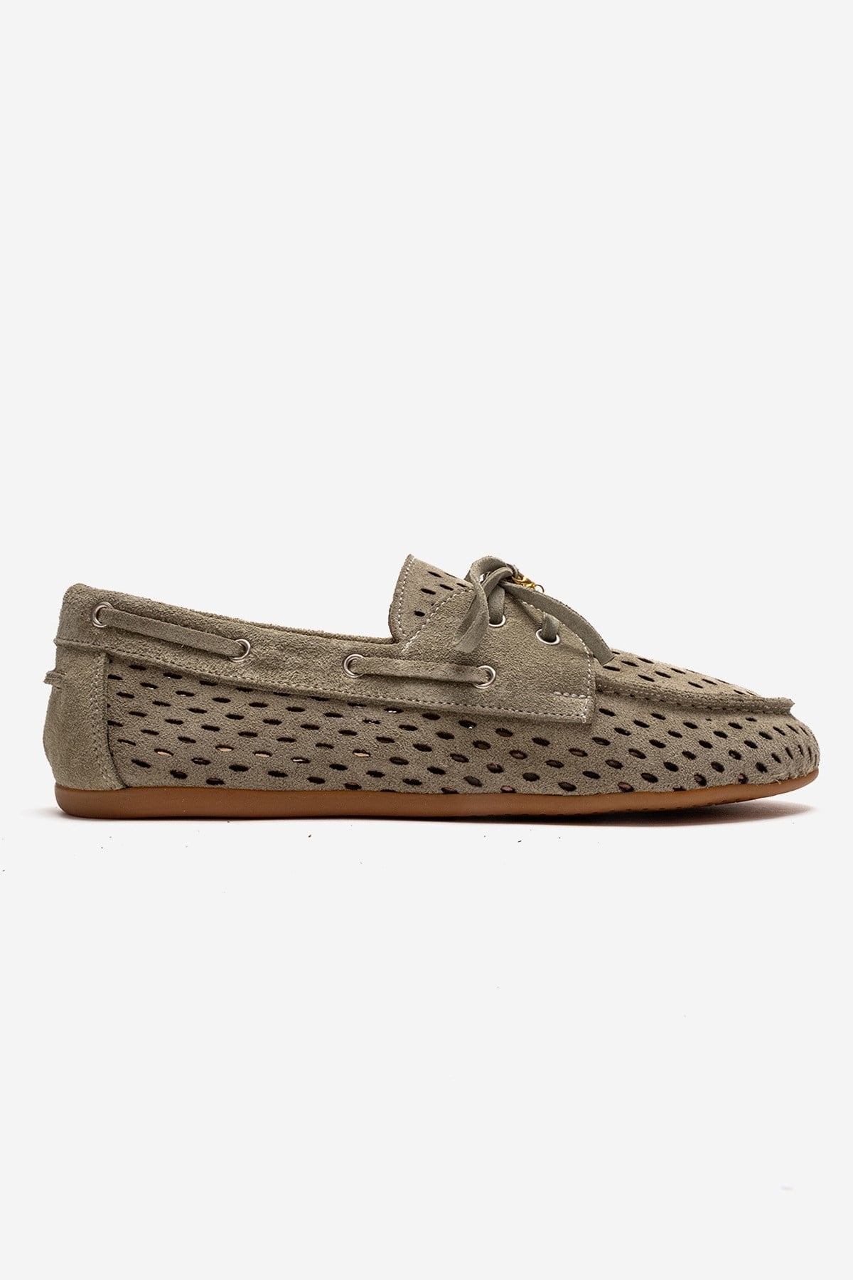STEVO Yeşil Süet Hakiki Deri Delikli Bağcıklı Kadın Loafer Ayakkabı (176-400-2-YESIL SUET)