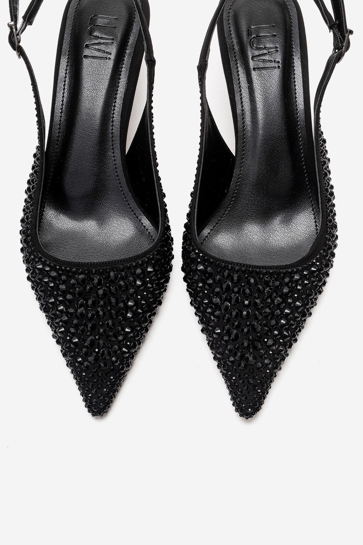 THEA Siyah Taşlı Kadın Topuklu Ayakkabı (196-9490-1-SIYAH TASLI)