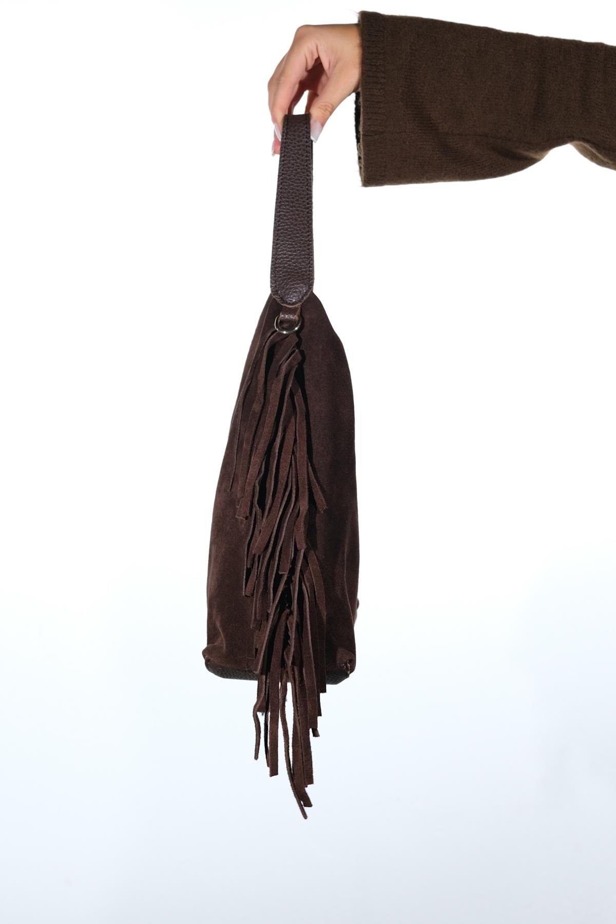 Süet kısımları hakiki deridir, mat kısımları ve iç çantası suni deridir. Mıknatıs kapamalıdır. Günlük kullanıma uygundur. %100 el işçiliği ile üretilmiştir.