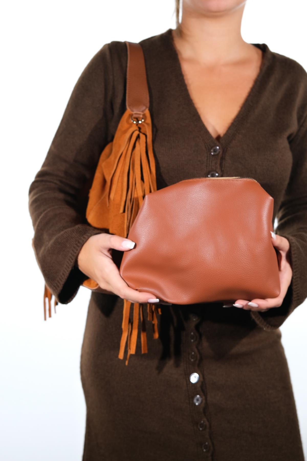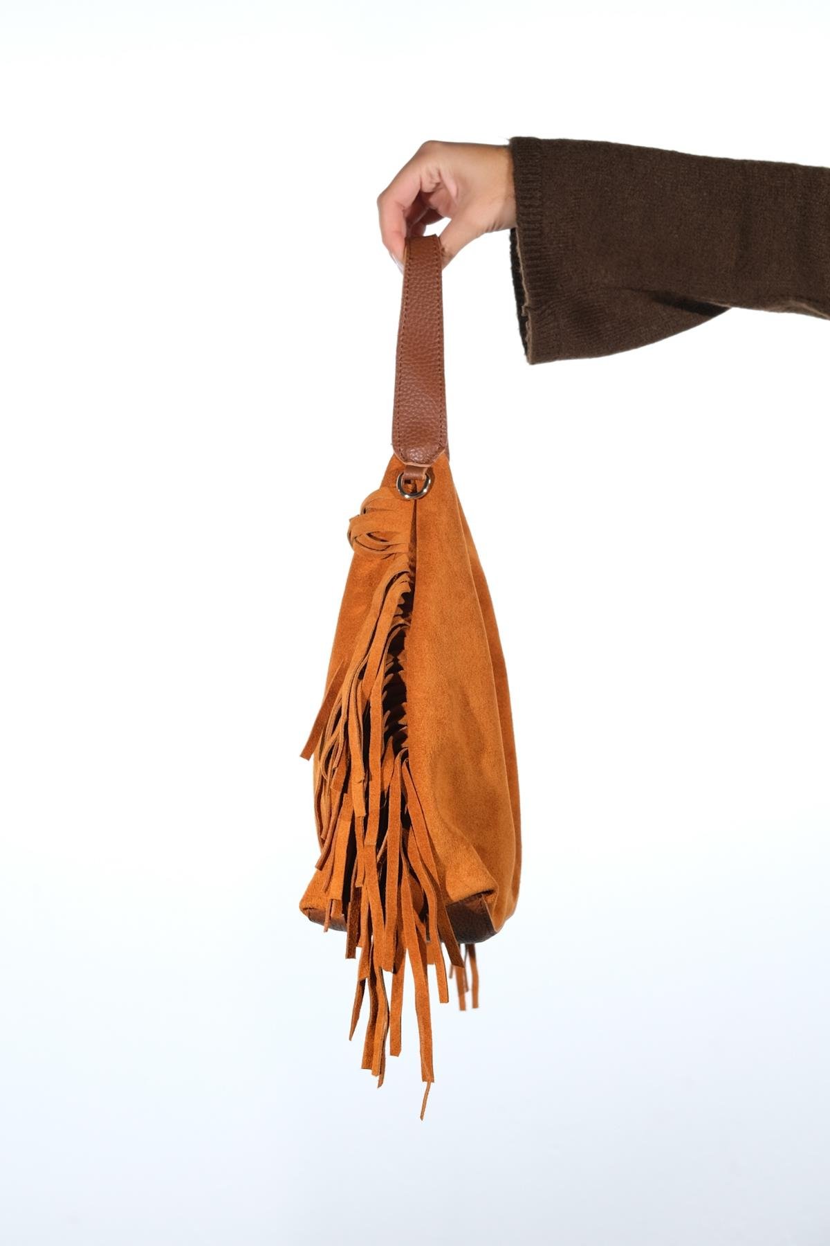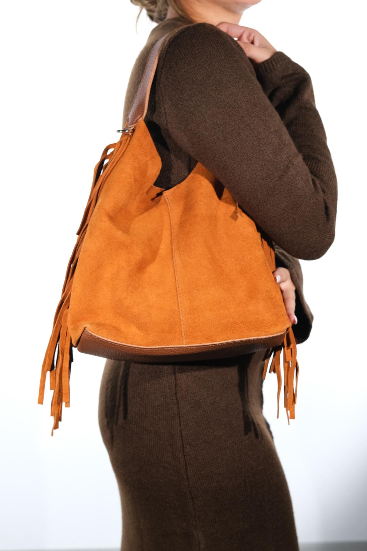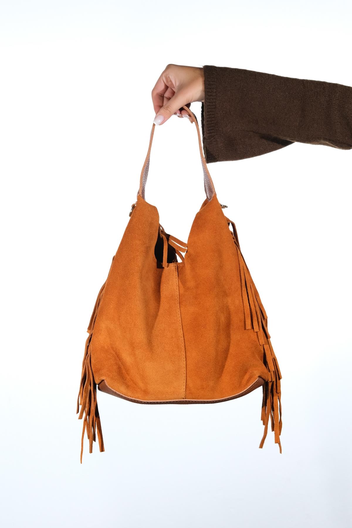 Süet kısımları hakiki deridir, mat kısımları ve iç çantası suni deridir. Mıknatıs kapamalıdır. Günlük kullanıma uygundur. %100 el işçiliği ile üretilmiştir.