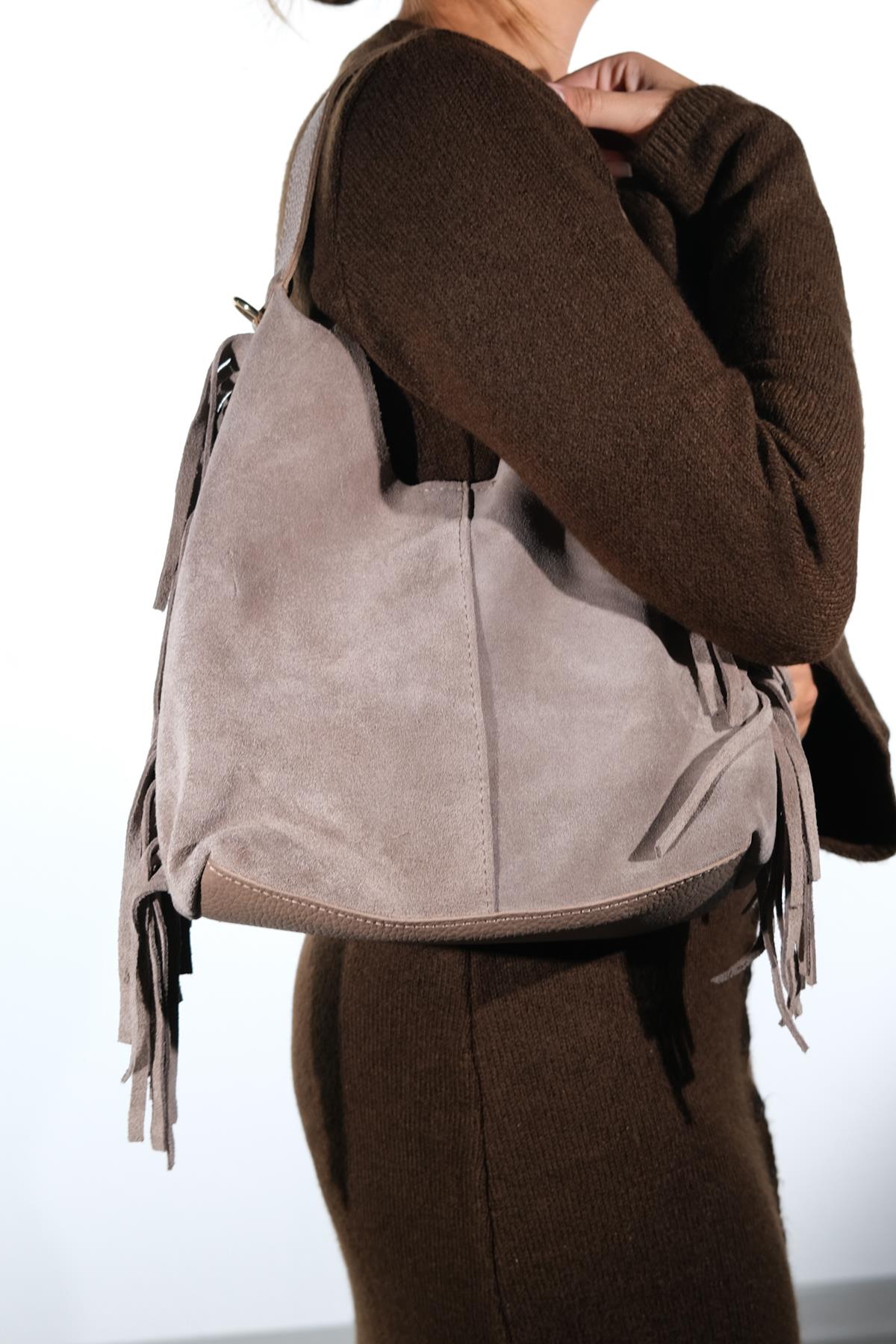 Süet kısımları hakiki deridir, mat kısımları ve iç çantası suni deridir. Mıknatıs kapamalıdır. Günlük kullanıma uygundur. %100 el işçiliği ile üretilmiştir.