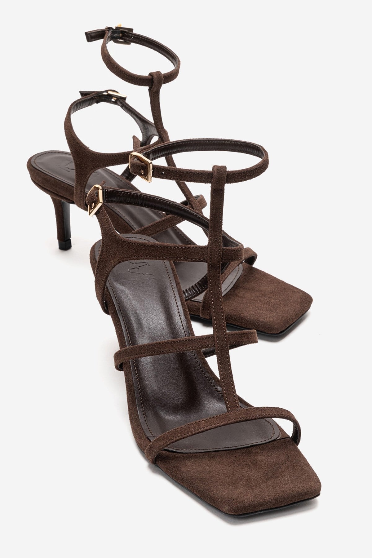 VIENTO Kahverengi Süet Bantlı Kadın İnce Topuklu Ayakkabı (113-2253-4-KAHVERENGI SUET)