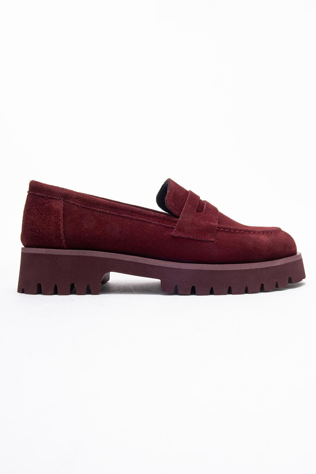 VIONEL Bordo Süet Hakiki Deri Kadın Loafer Ayakkabı (179-127-6-BORDO SUET)