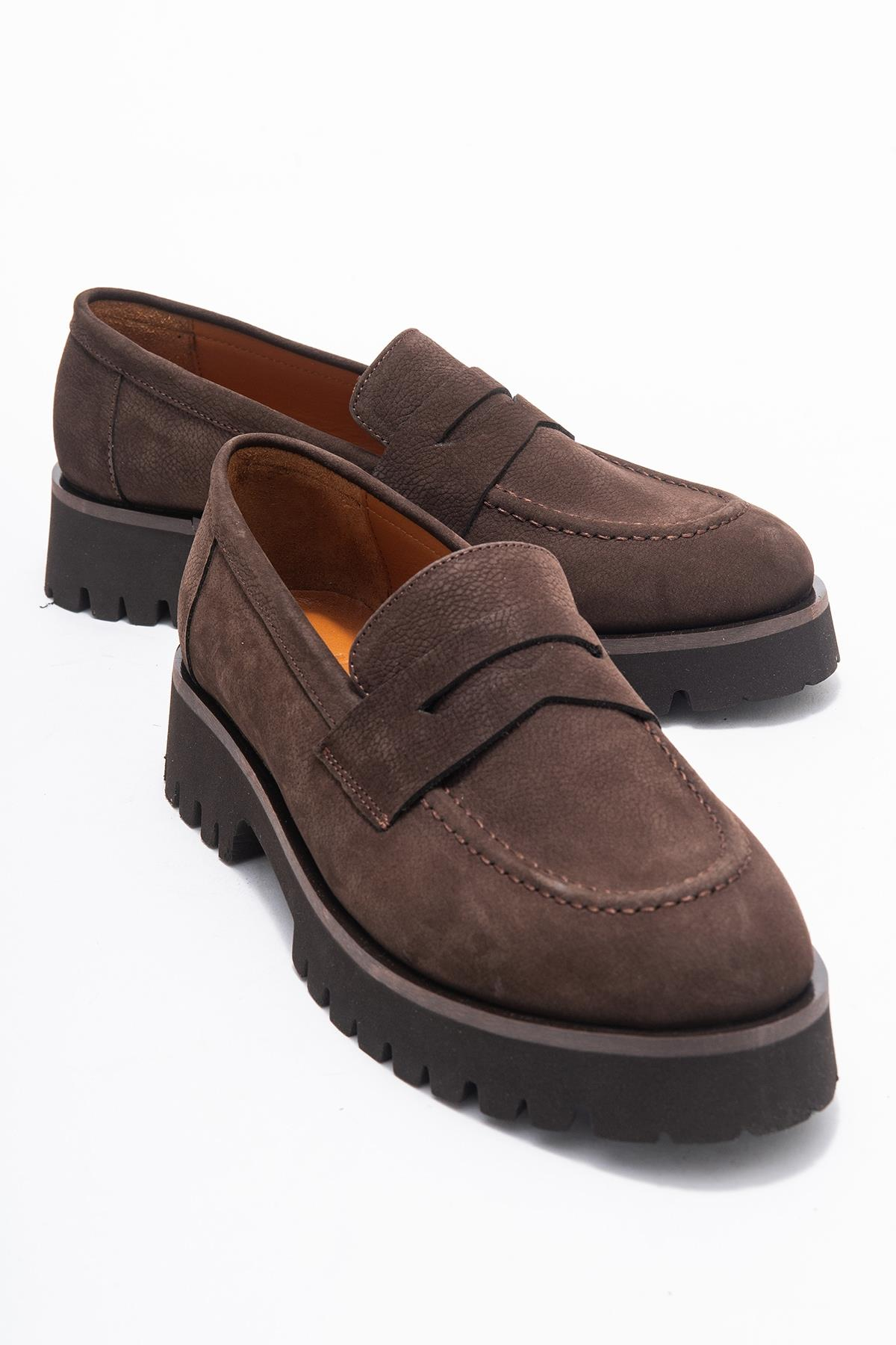 VIONEL Kahverengi Nubuk Hakiki Deri Kadın Loafer Ayakkabı (179-127-2-KAHVERENGI NUBUK)