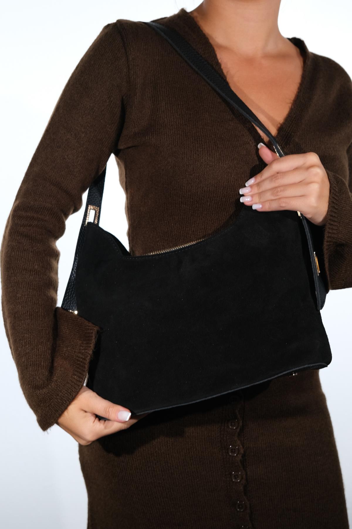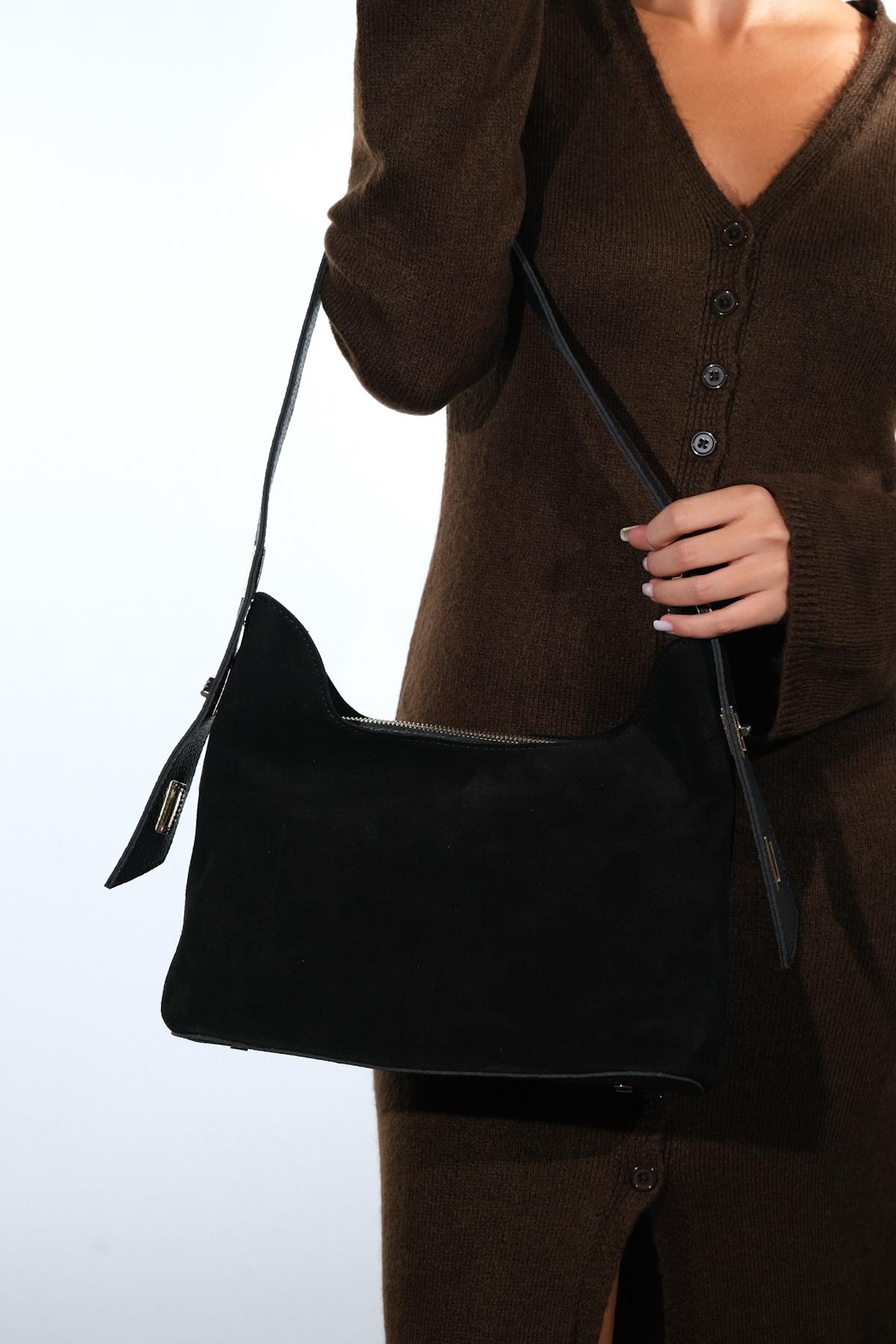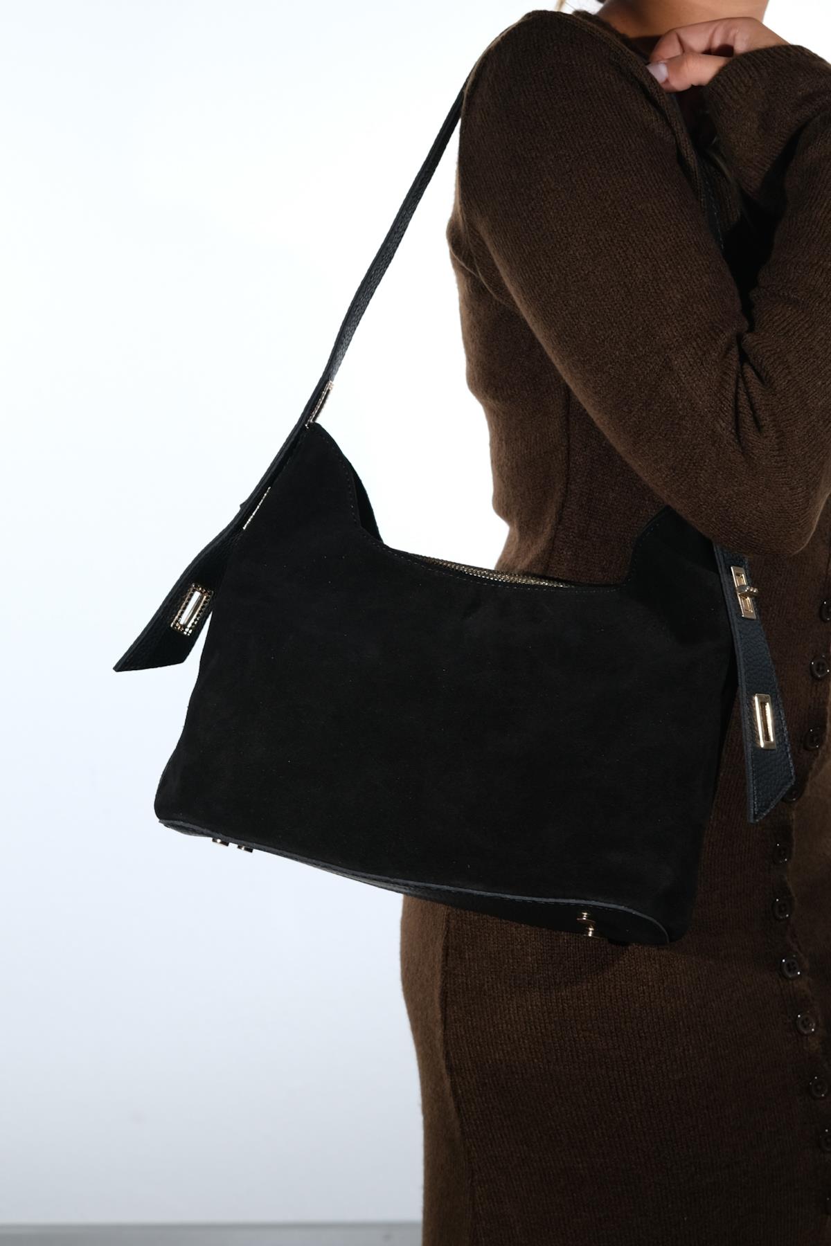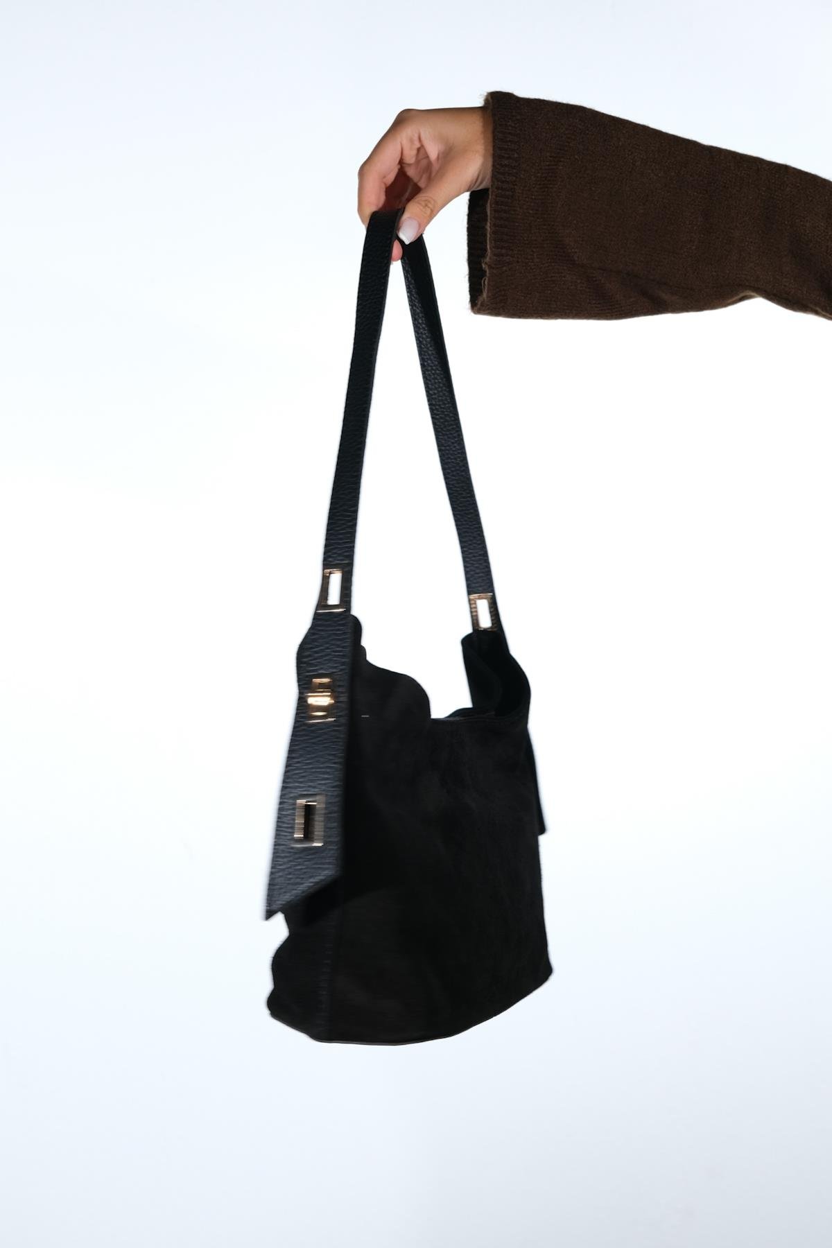 Süet kısımları hakiki deridir, askısı suni deridir. Tek gözden oluşmaktadır, fermuar kapamalıdır, içi astarlıdır. Günlük kullanıma uygundur. %100 el işçiliği ile üretilmiştir.