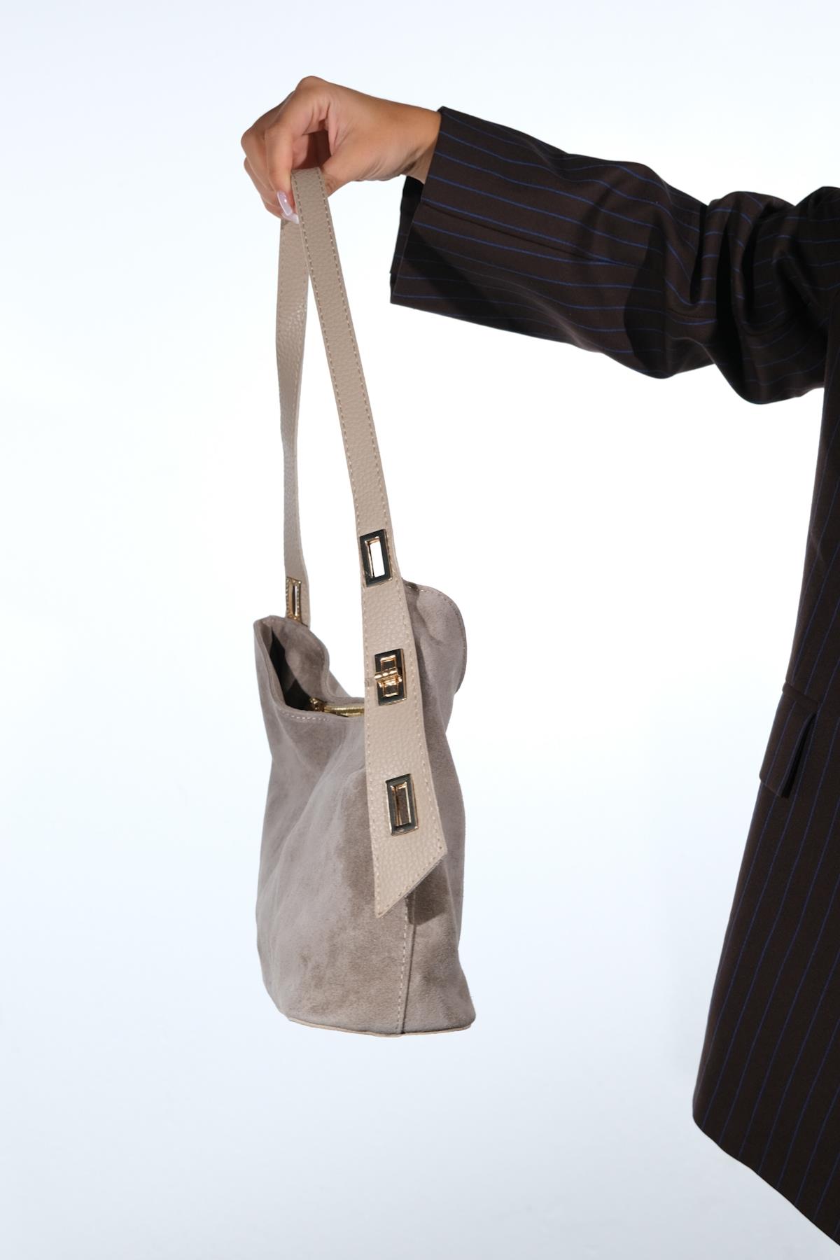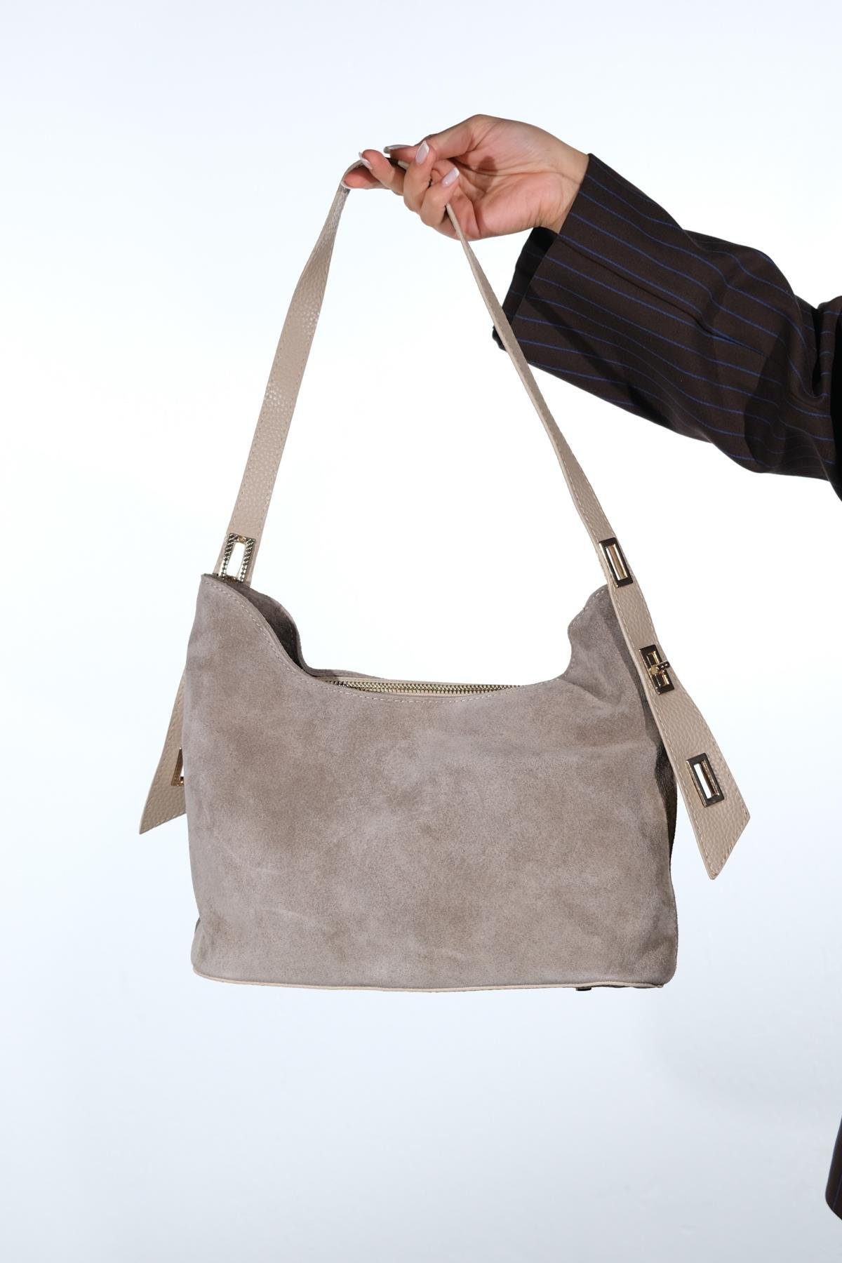 Süet kısımları hakiki deridir, askısı suni deridir. Tek gözden oluşmaktadır, fermuar kapamalıdır, içi astarlıdır. Günlük kullanıma uygundur. %100 el işçiliği ile üretilmiştir.