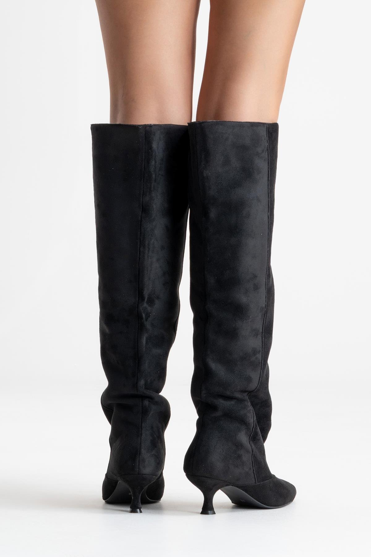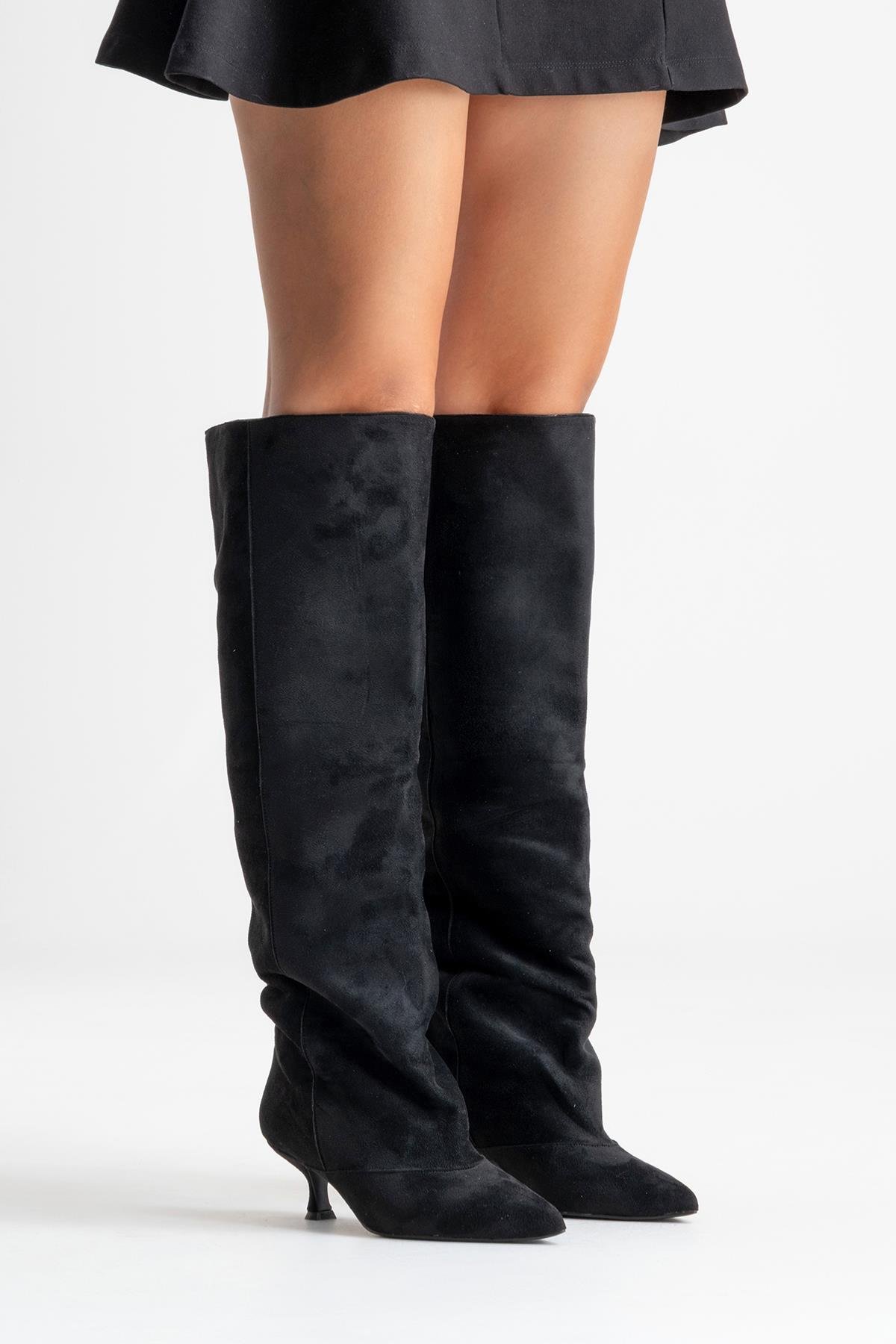 ZACH Siyah Süet Diz Üstü Kadın Kısa Topuklu Çizme (124-8878-1-SIYAH SUET)